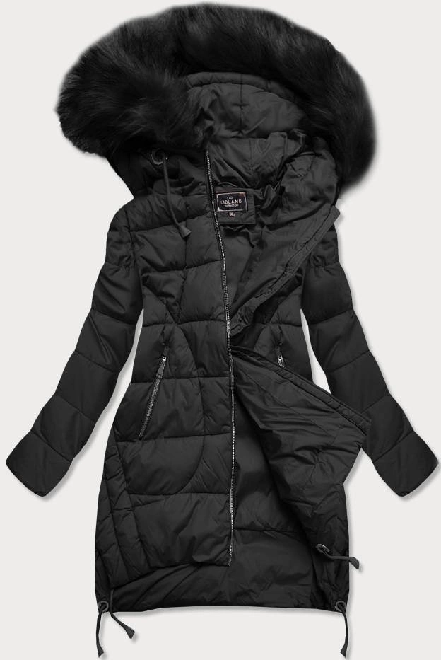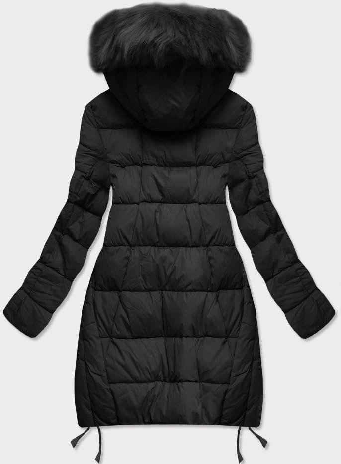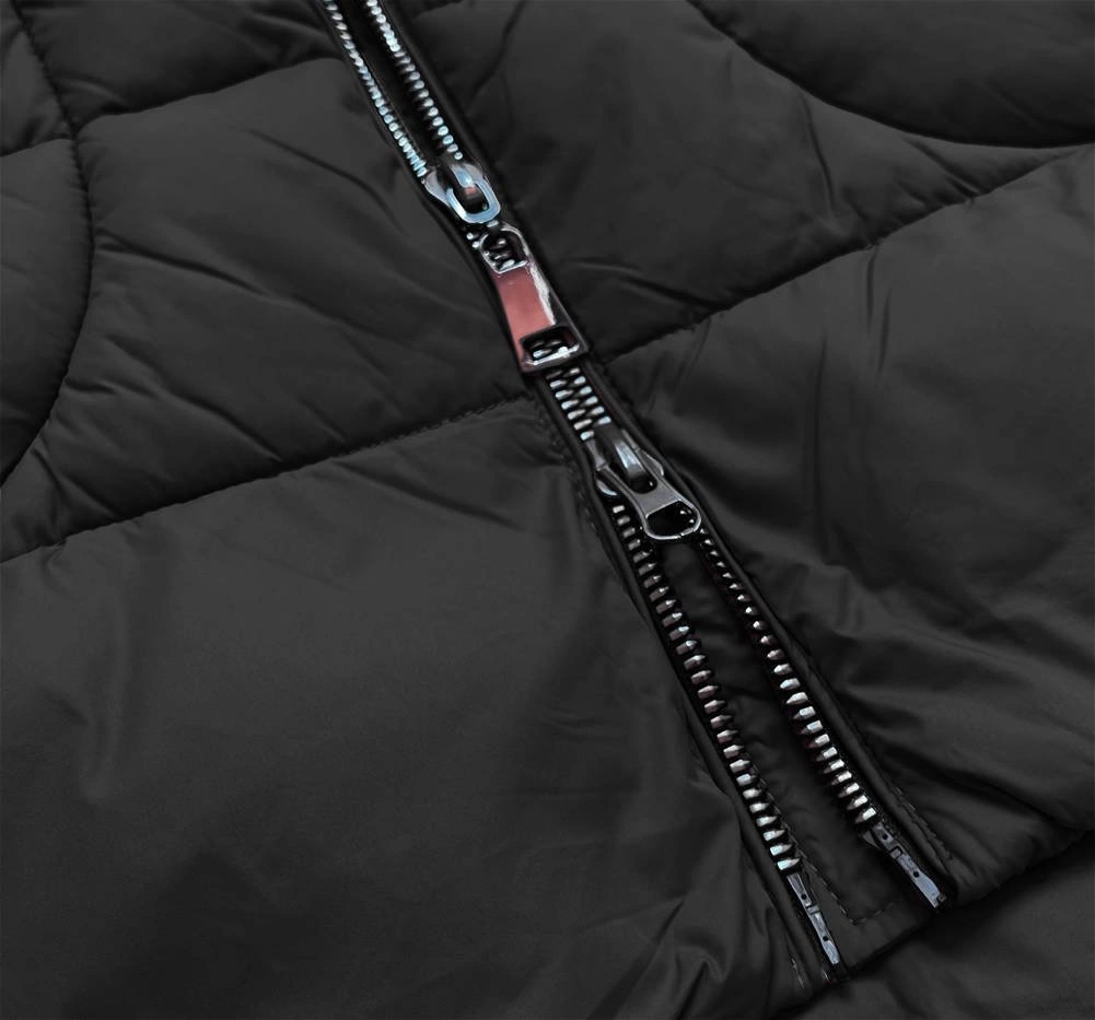 Pikowana kurtka zimowa damska z kapturem czarna (7709BIG)