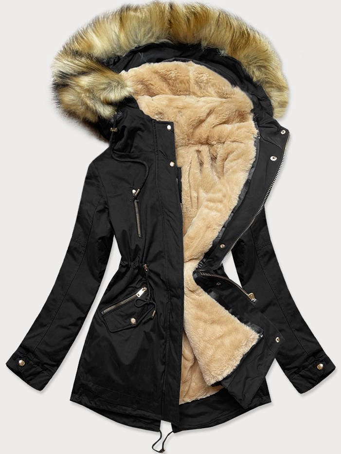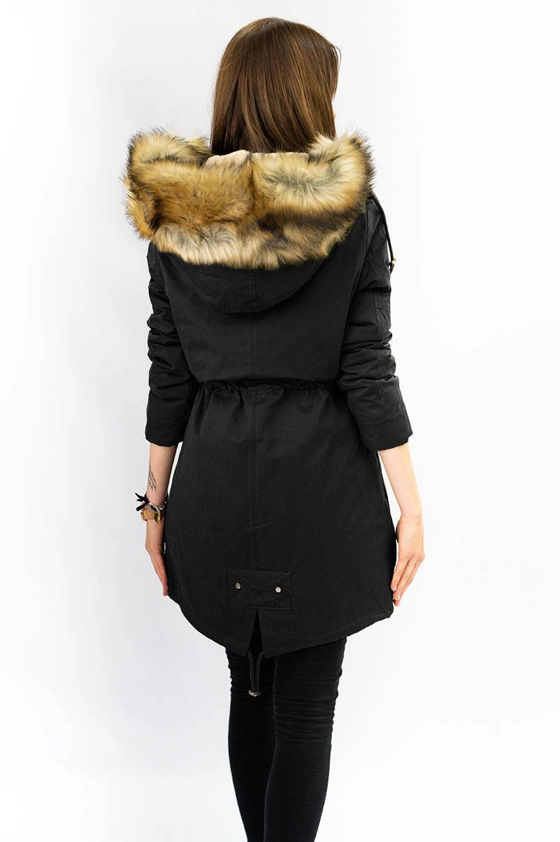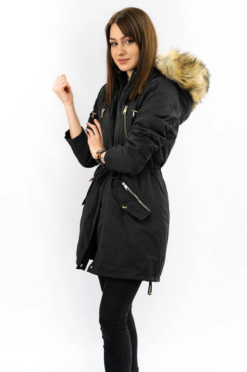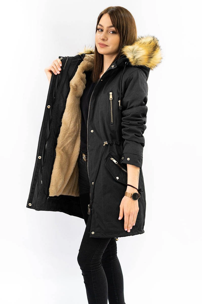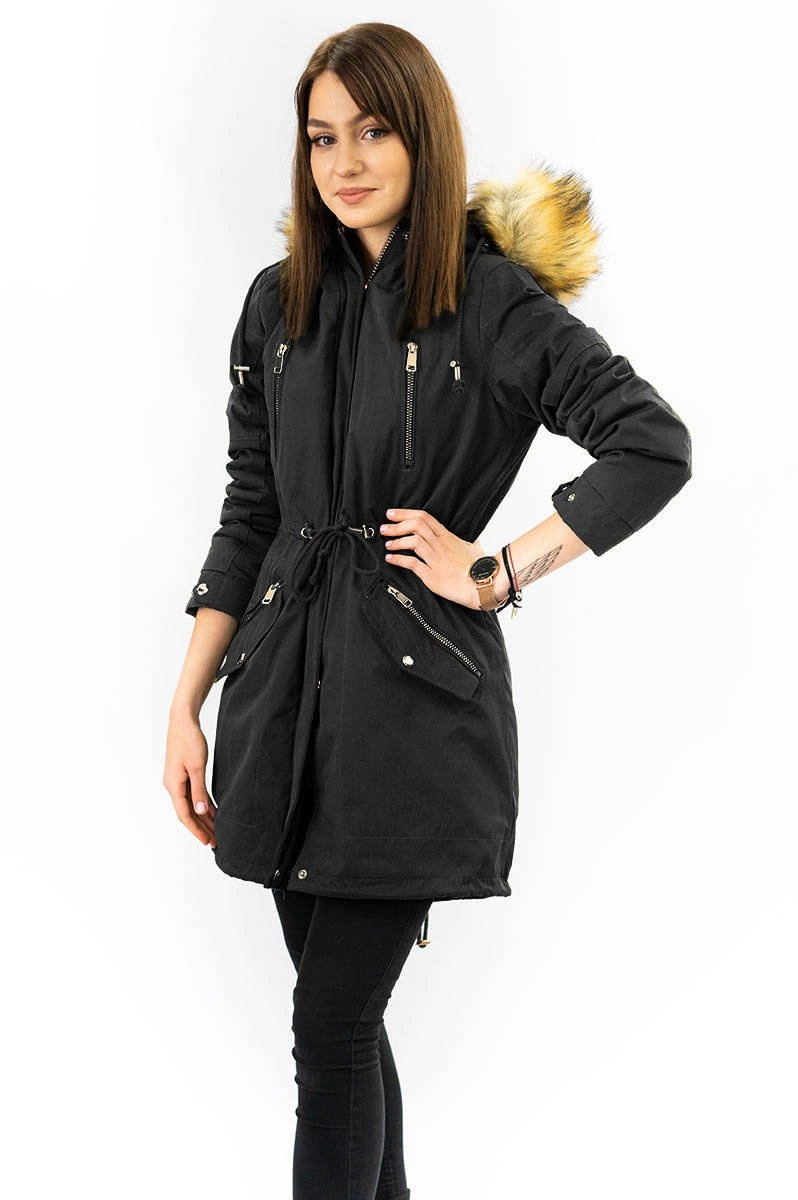 CIEPŁA DAMSKA ZIMOWA PARKA Z PODPINKĄ CZARNA (W168)