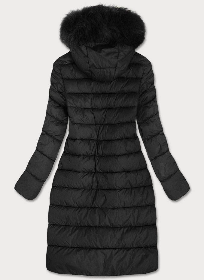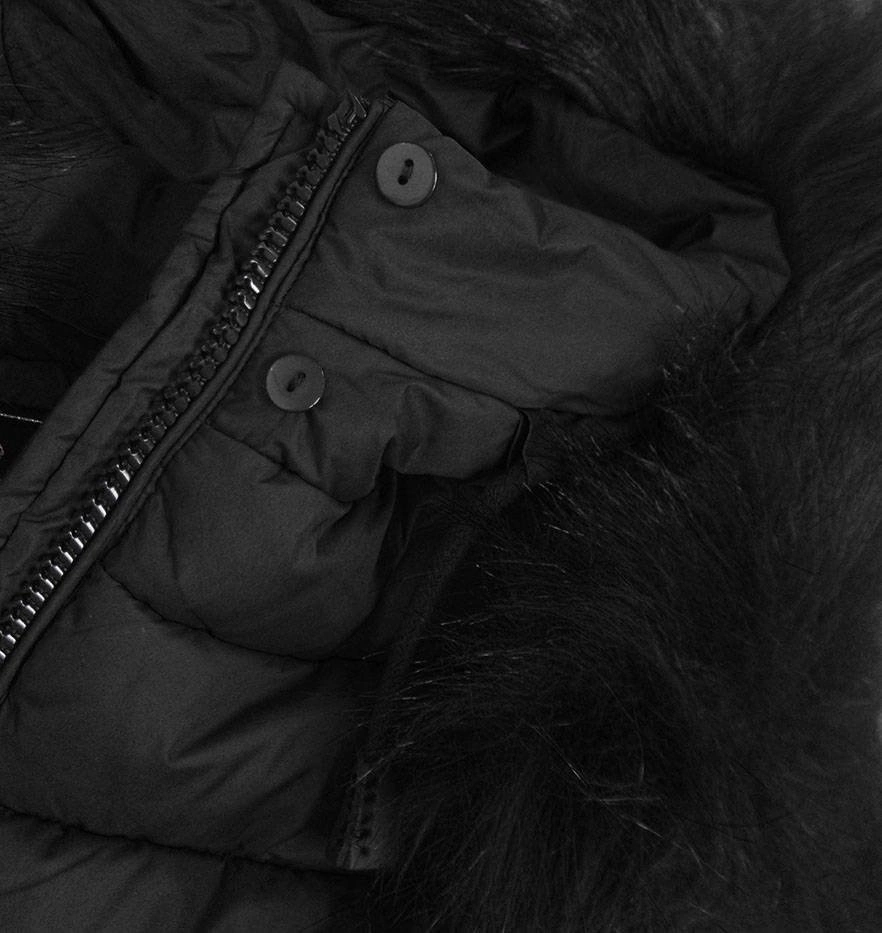 Pikowana damska kurtka z kapturem czarna (7754BIG)