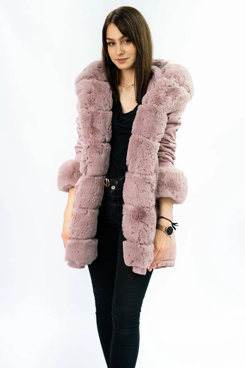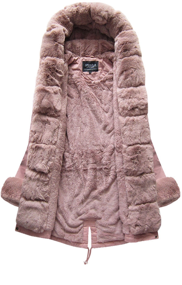 BAWEŁNIANA DAMSKA PARKA ZIMOWA Z FUTREM ANTYCZNY RÓŻ (XW793-2X)