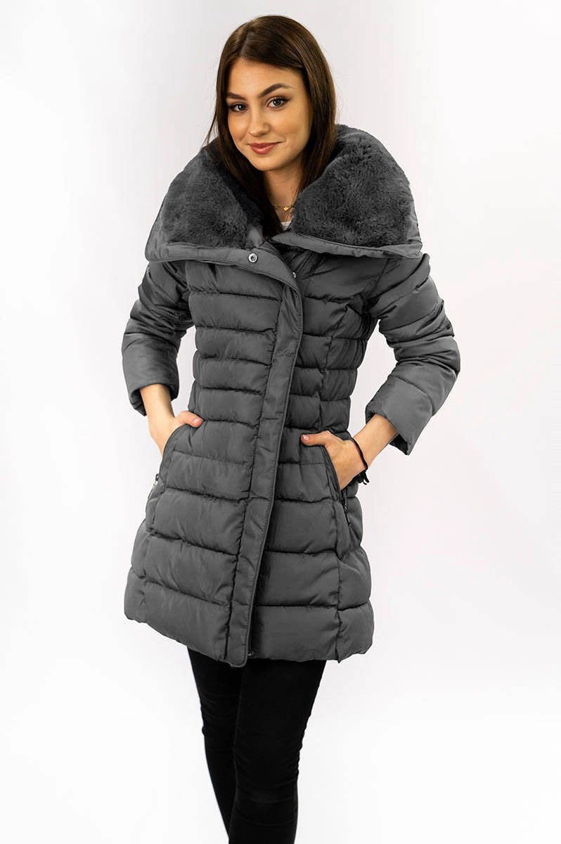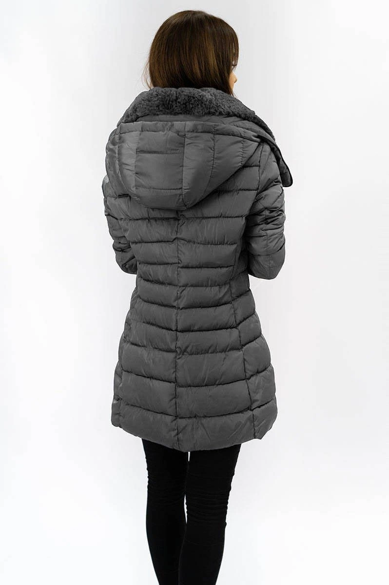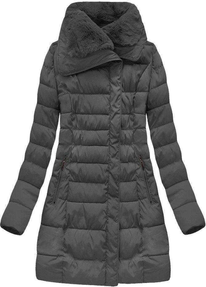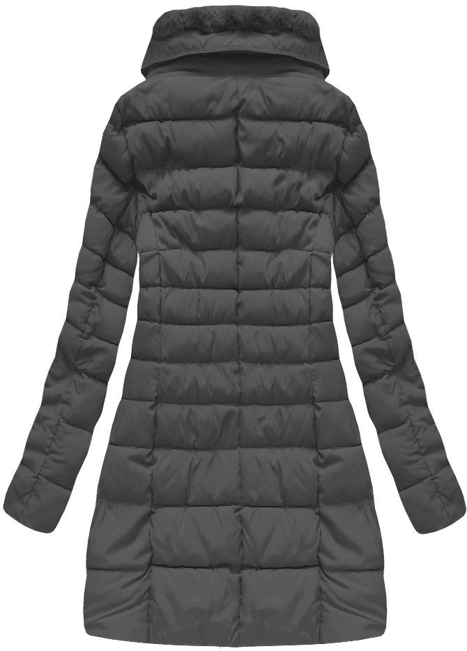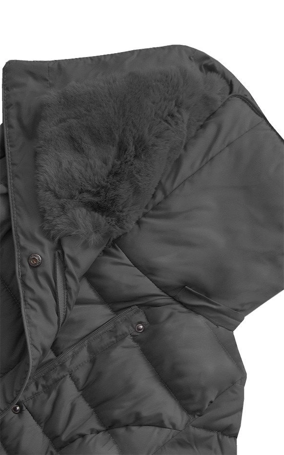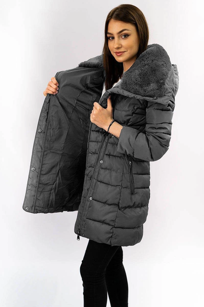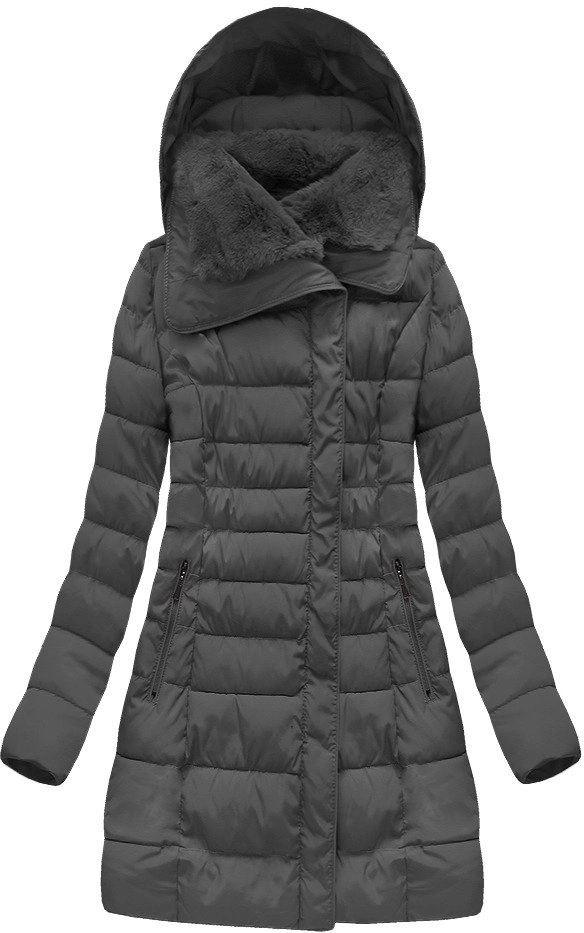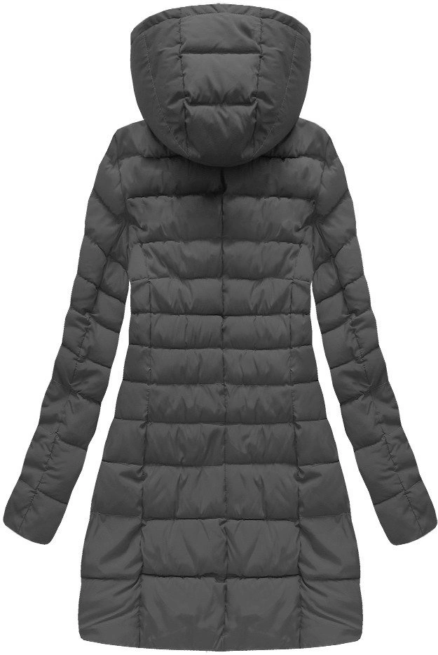 DŁUGA KURTKA DAMSKA ZIMOWA Z KAPTUREM GRAFITOWA (B1068-30)