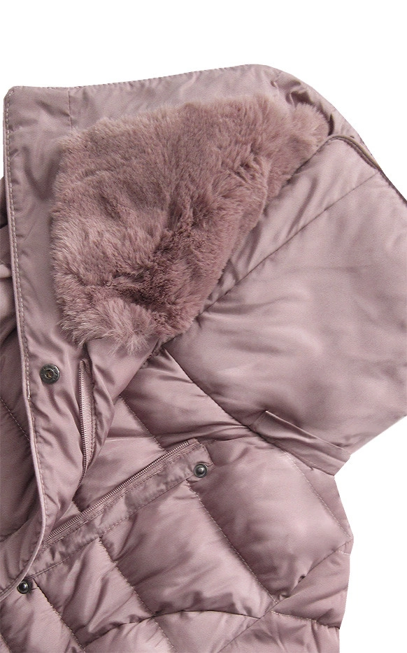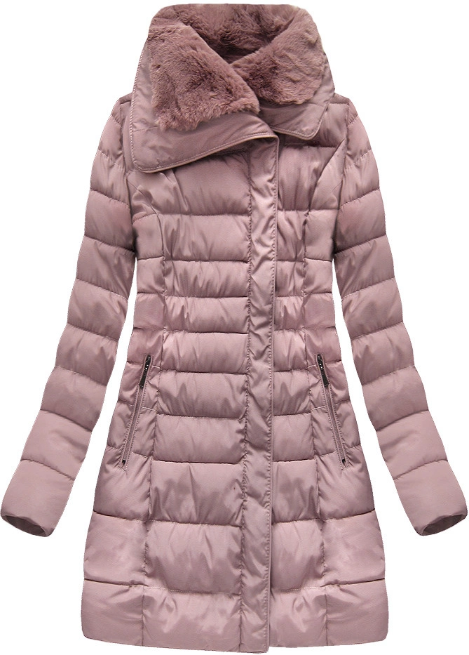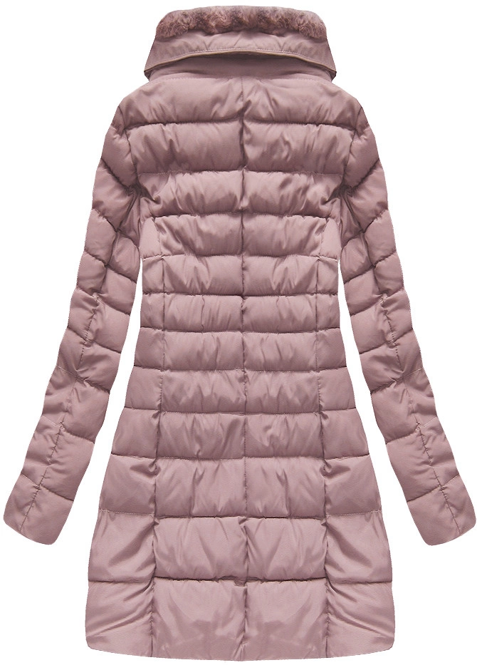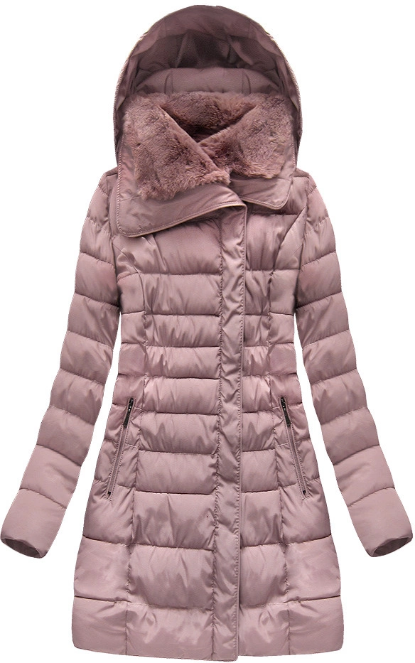 DŁUGA KURTKA DAMSKA ZIMOWA Z KAPTUREM ANTYCZNY RÓŻ (B1068-30)