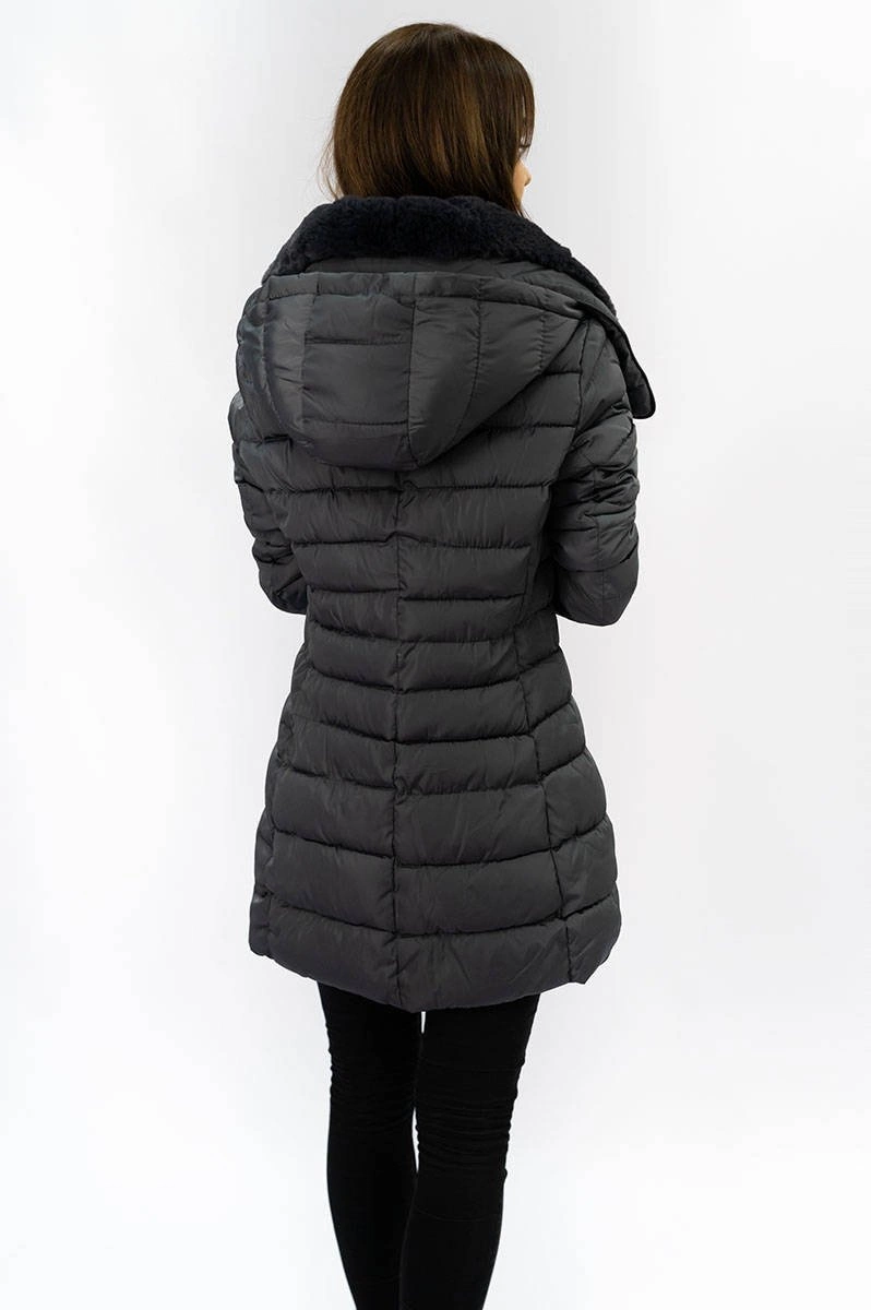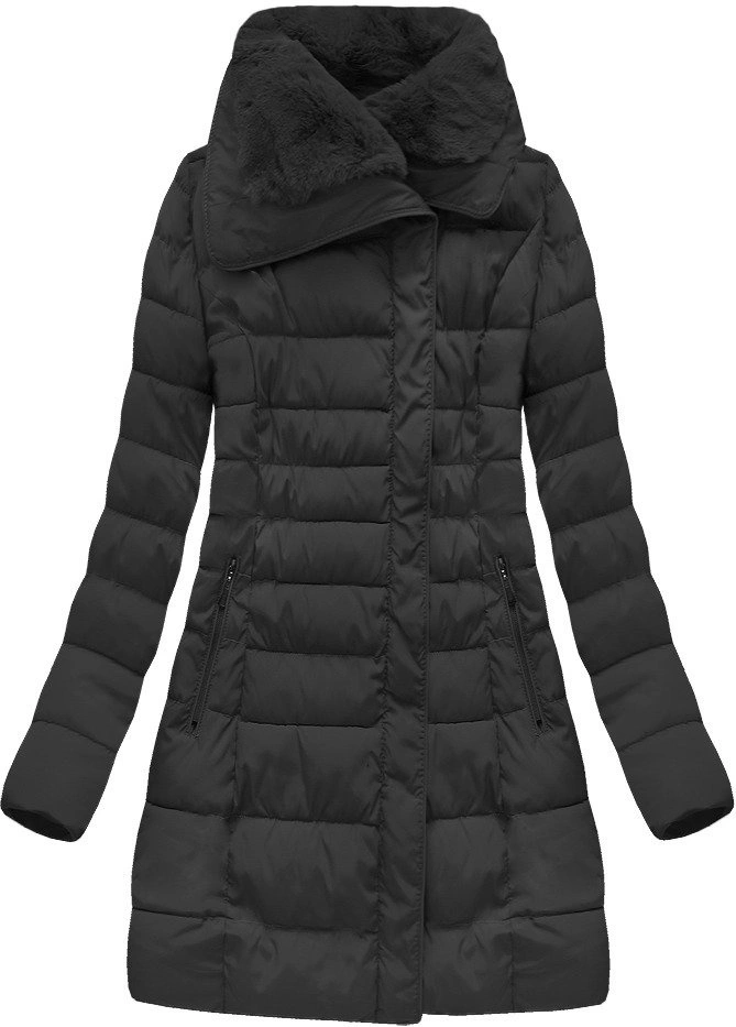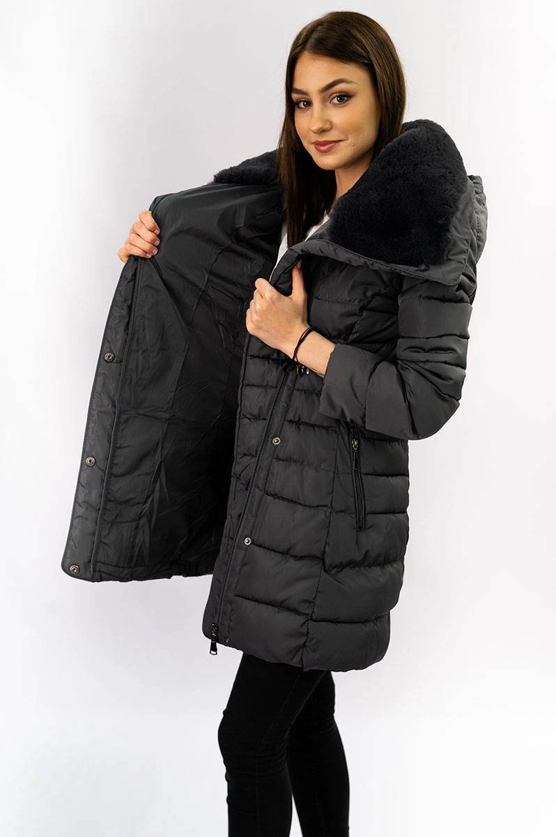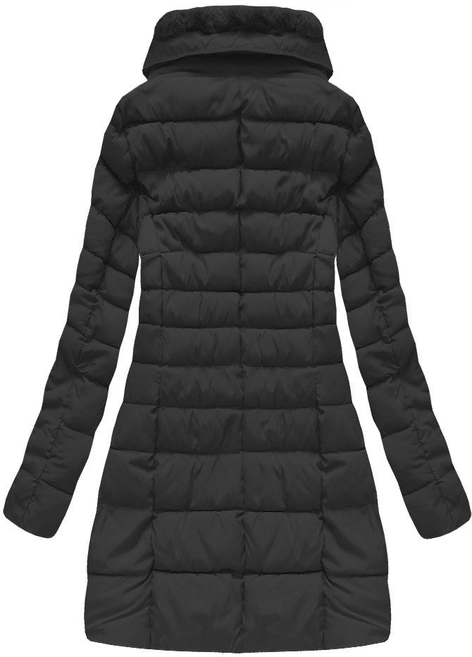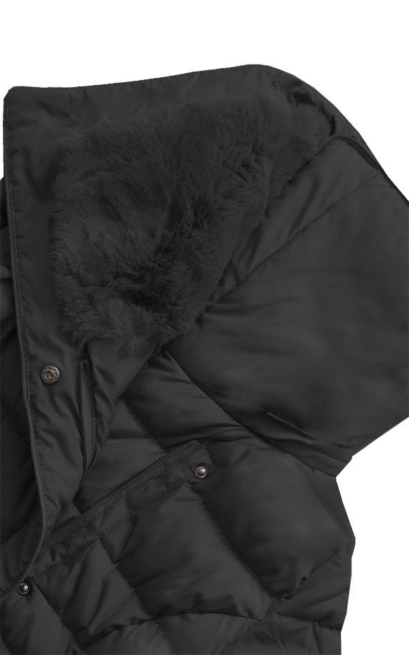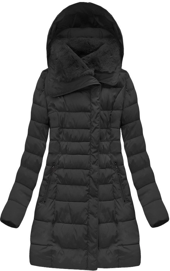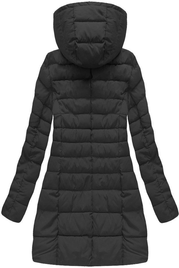 DŁUGA KURTKA DAMSKA ZIMOWA Z KAPTUREM CZARNA (B1068-30)