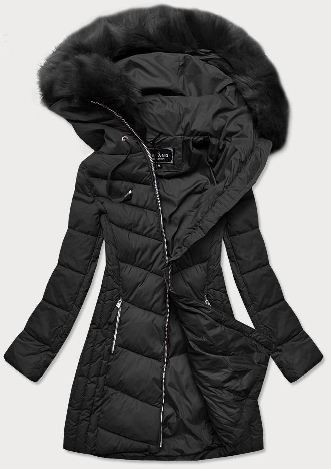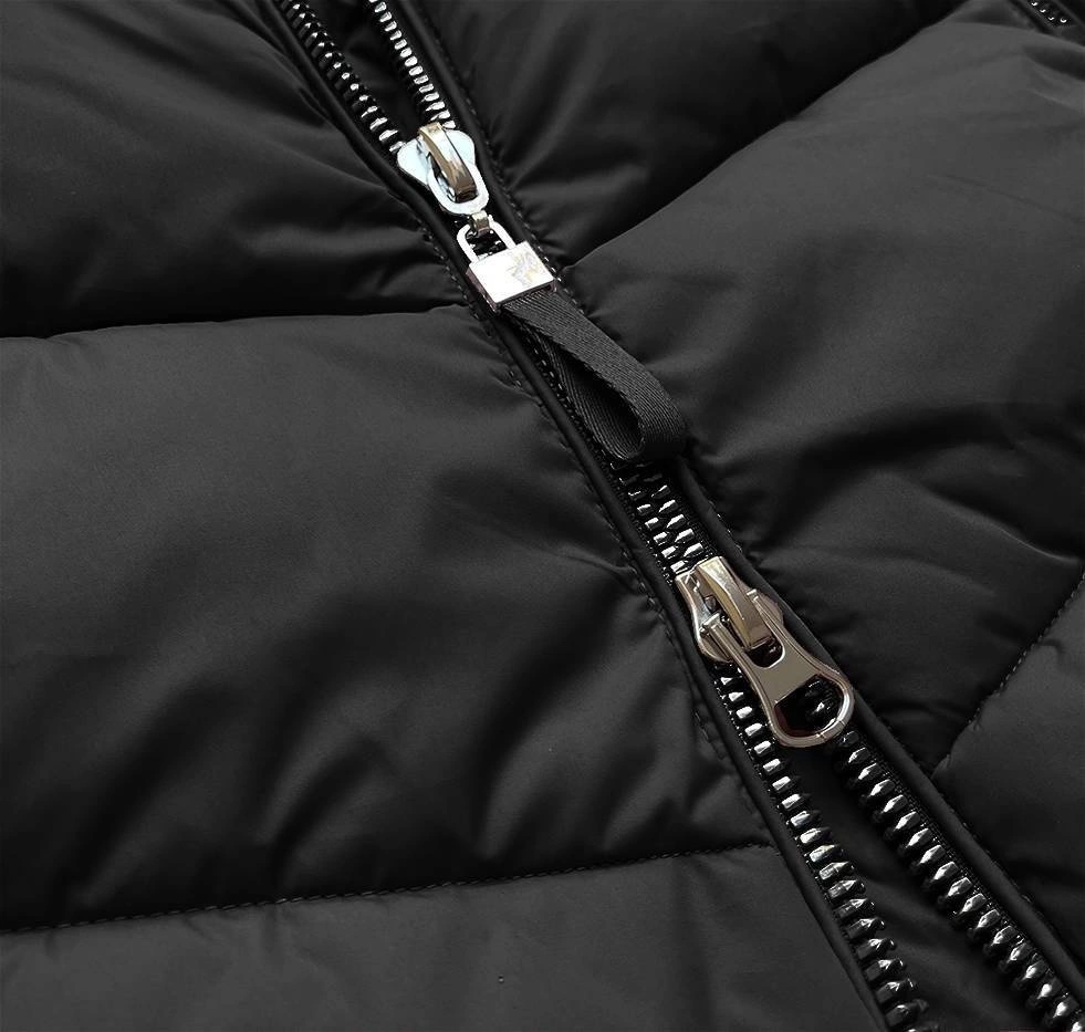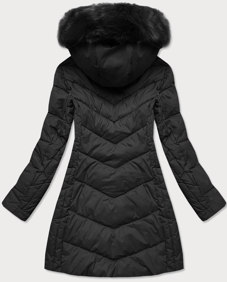 DŁUGA DAMSKA PIKOWANA ZIMOWA KURTKA CZARNA (7689BIG)