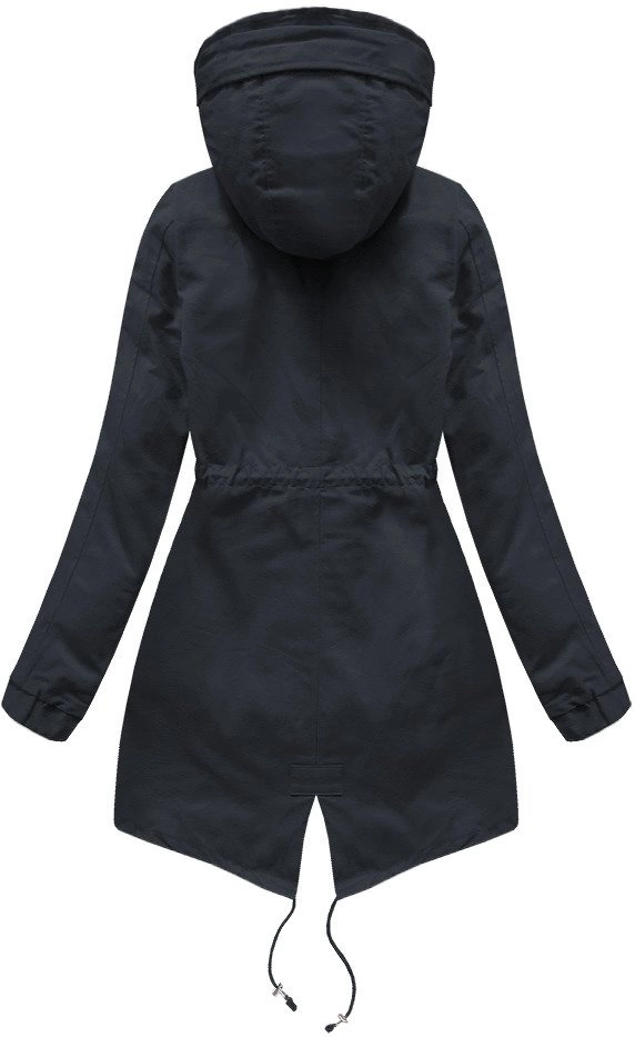 - Z tyłu parki na dole znajduje się delikatne rozcięcie zakończone trokami ściągającymi z stoperami.