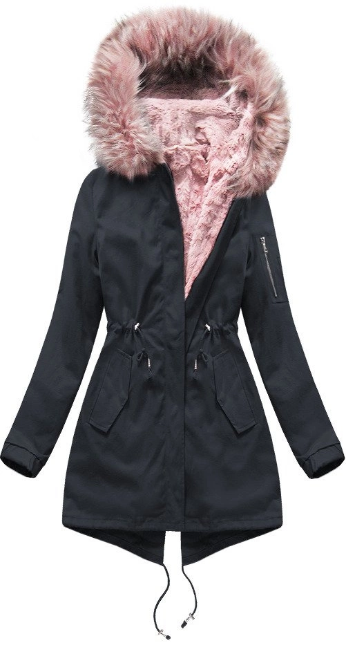 BAWEŁNIANA PARKA Z PODPINKĄ GRANATOWO-RÓŻOWA (R1308)