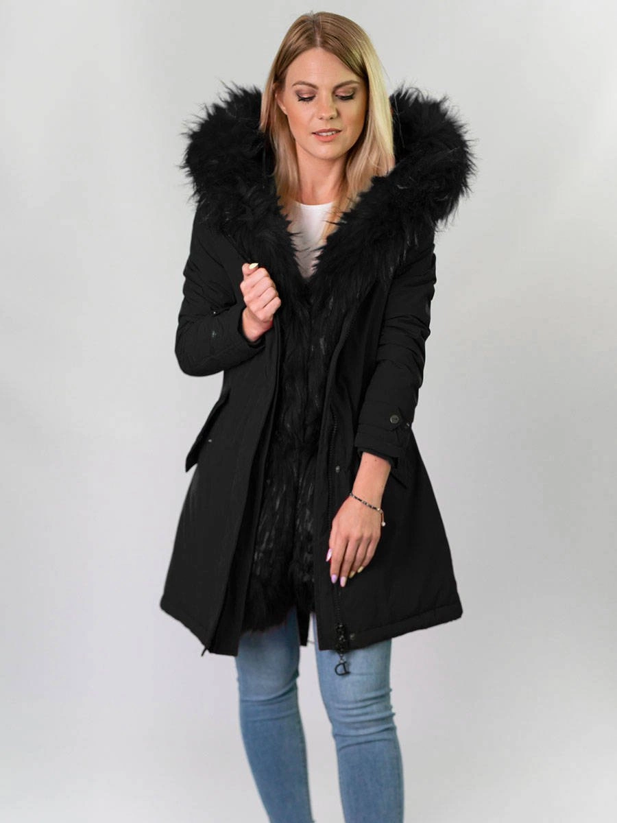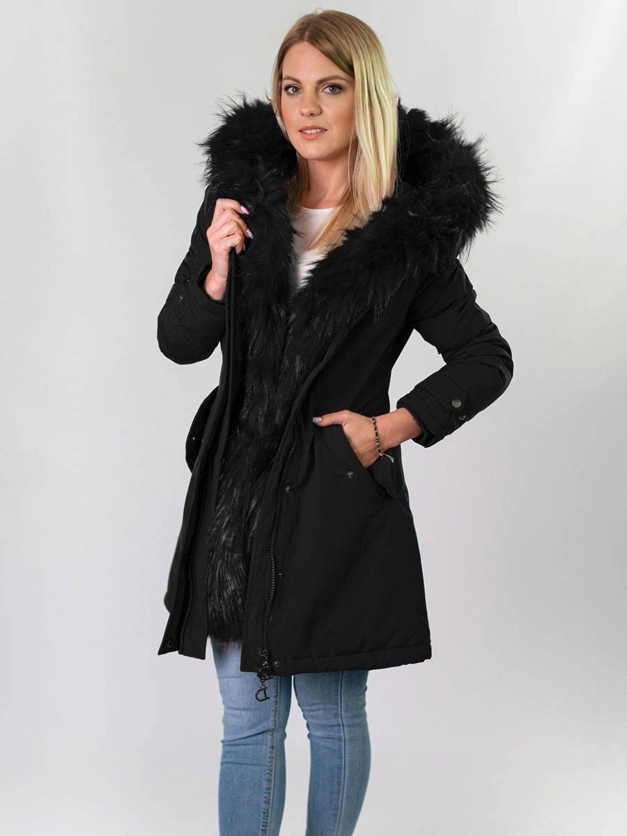 GRUBA ZIMOWA KURTKA DAMSKA Z KAPTUREM CZARNA (CARMEN)
