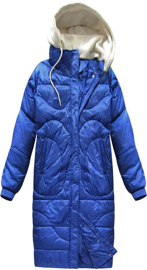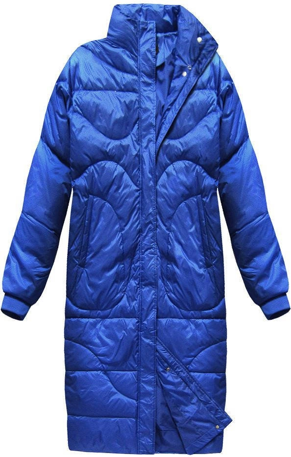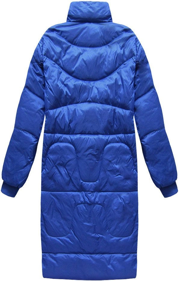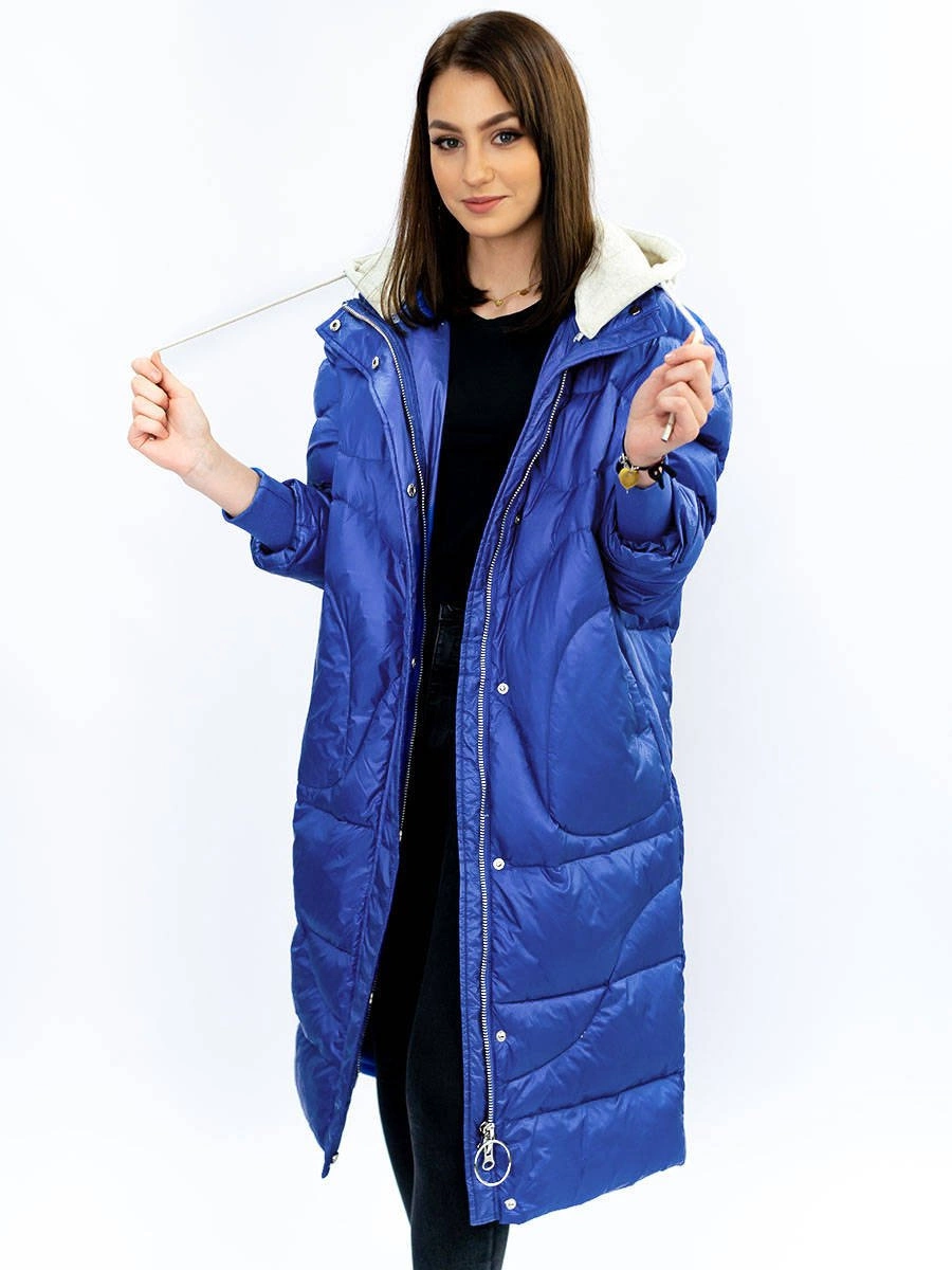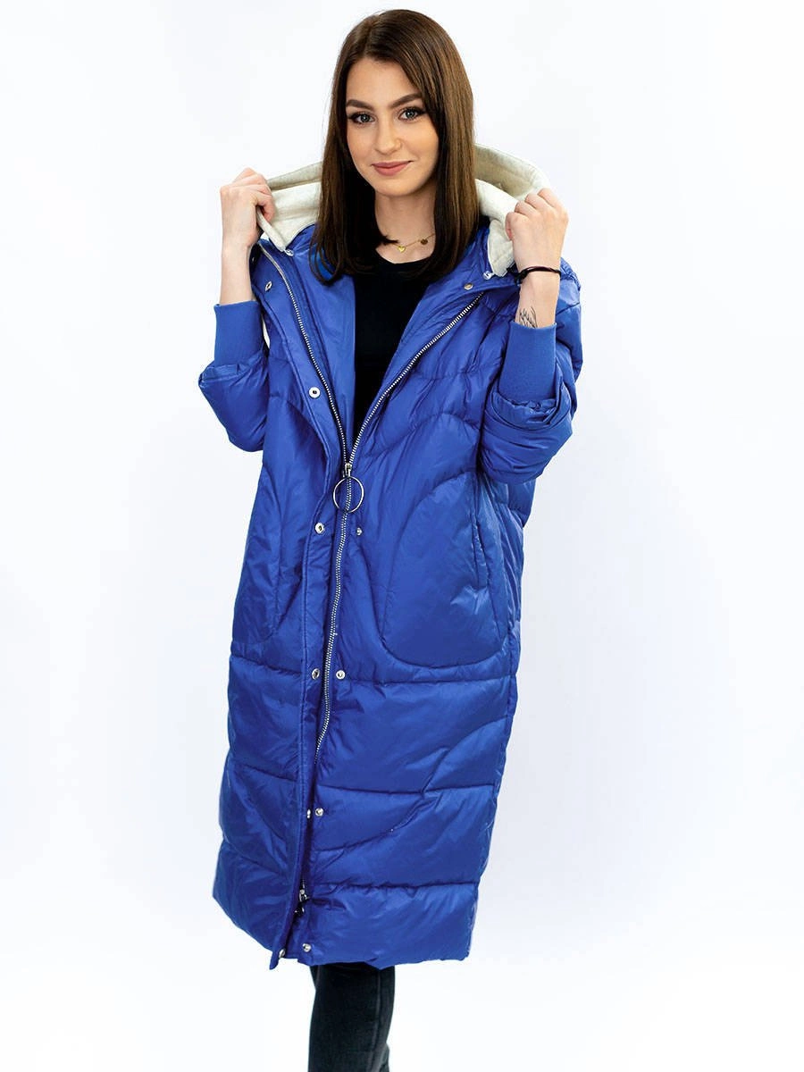 ZIMOWY PŁASZCZ DAMSKI OVERSIZE Z PUCHEM NATURALNYM NIEBIESKI (17127)