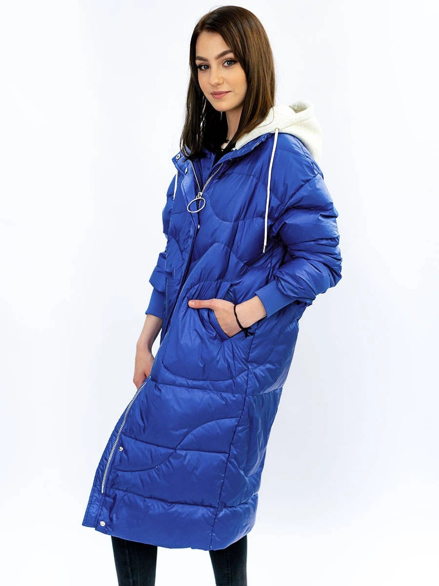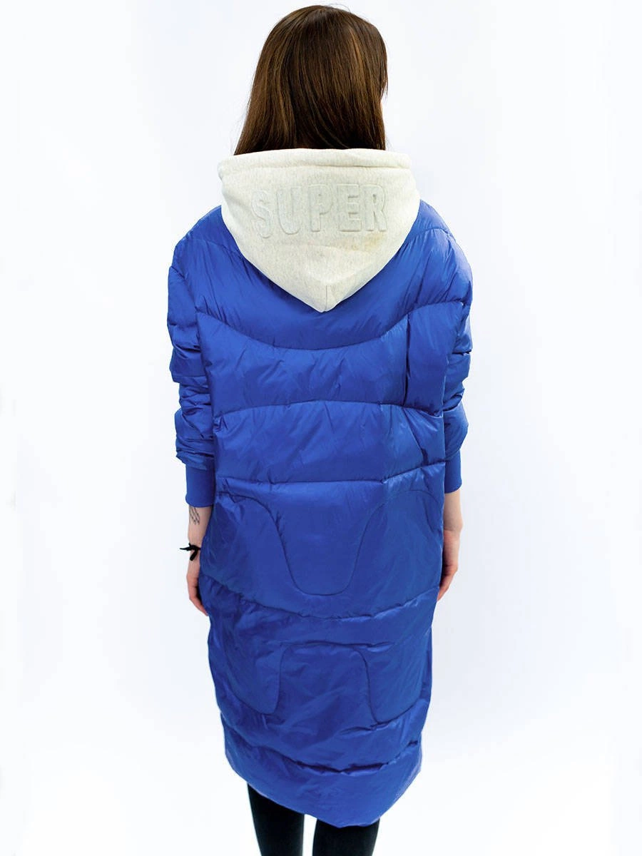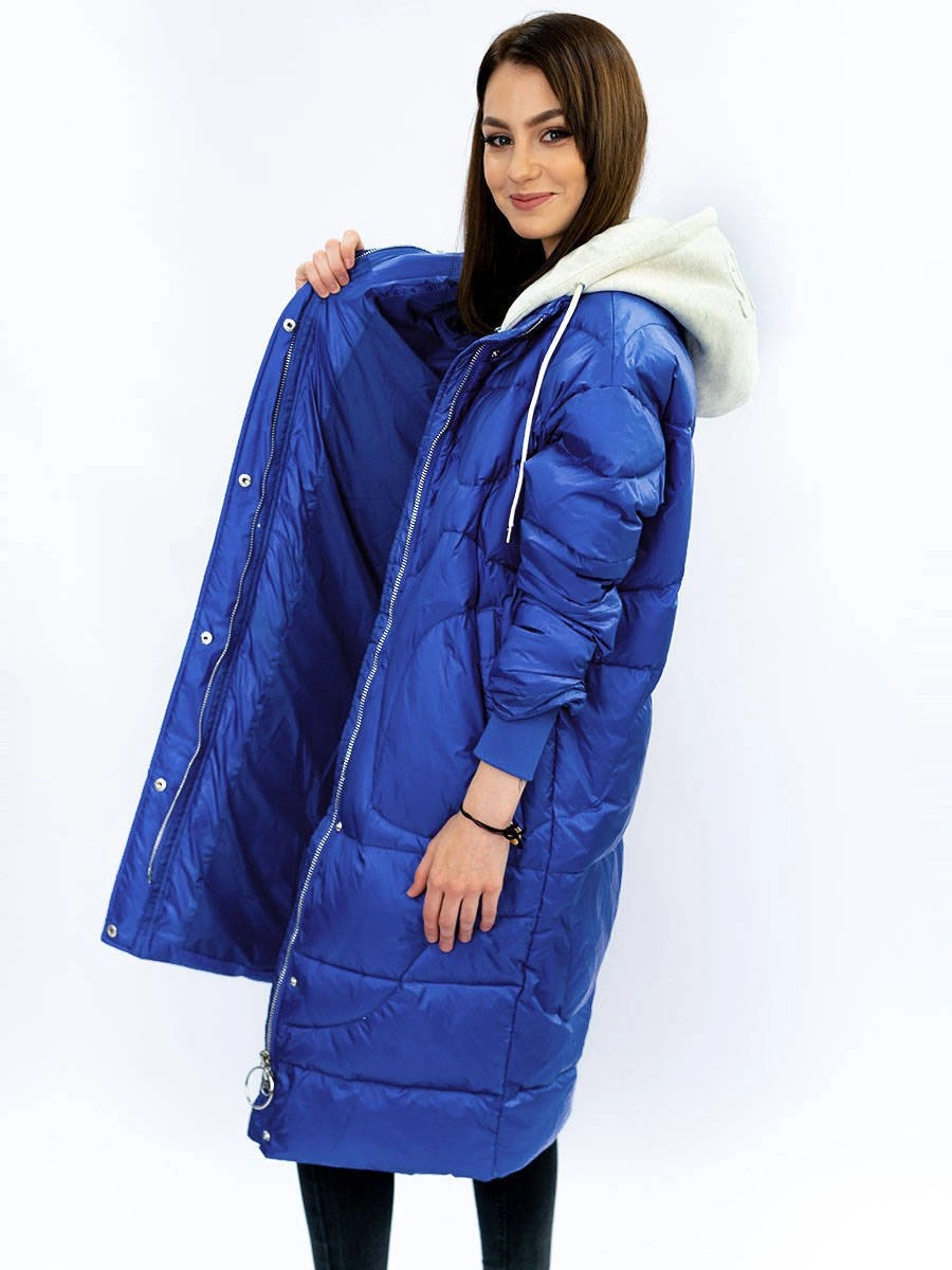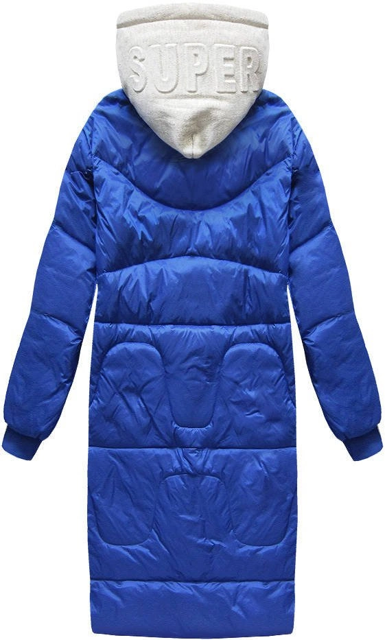 ZIMOWY PŁASZCZ DAMSKI OVERSIZE Z PUCHEM NATURALNYM NIEBIESKI (17127)