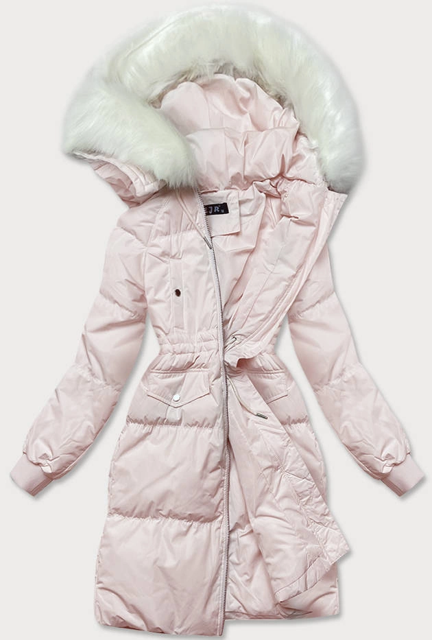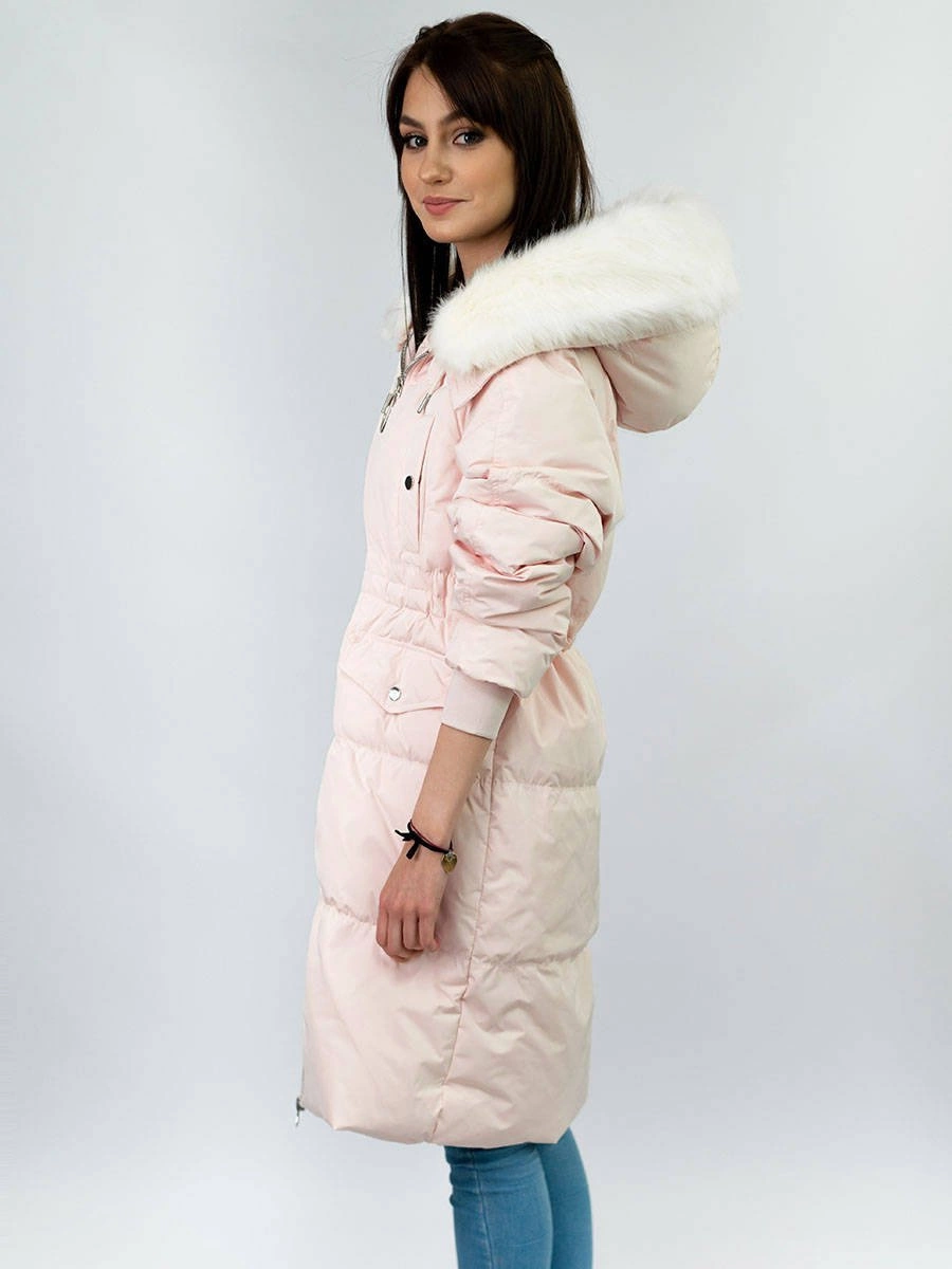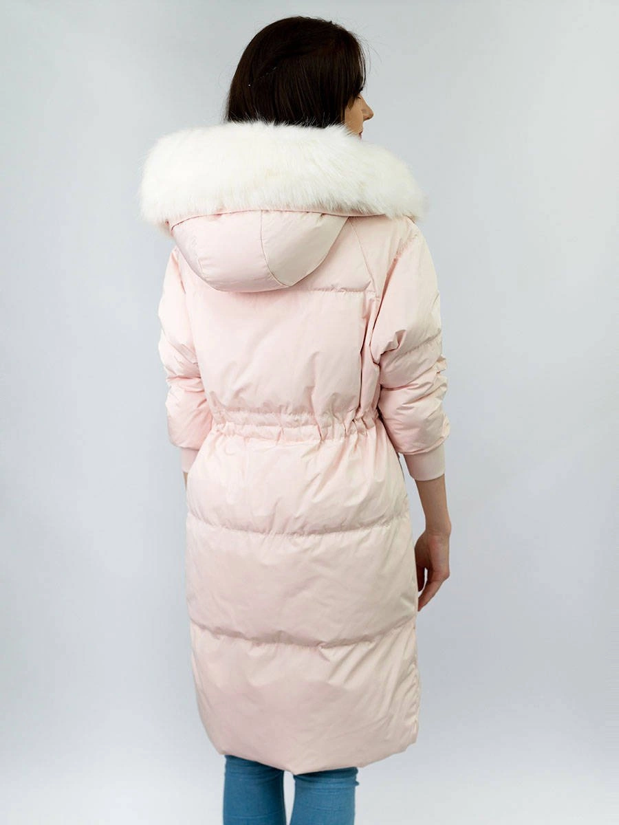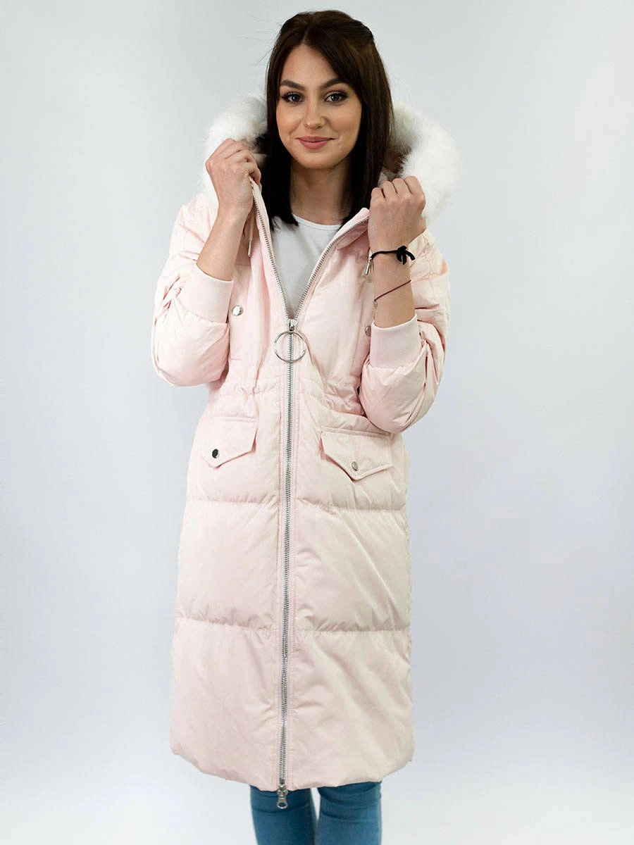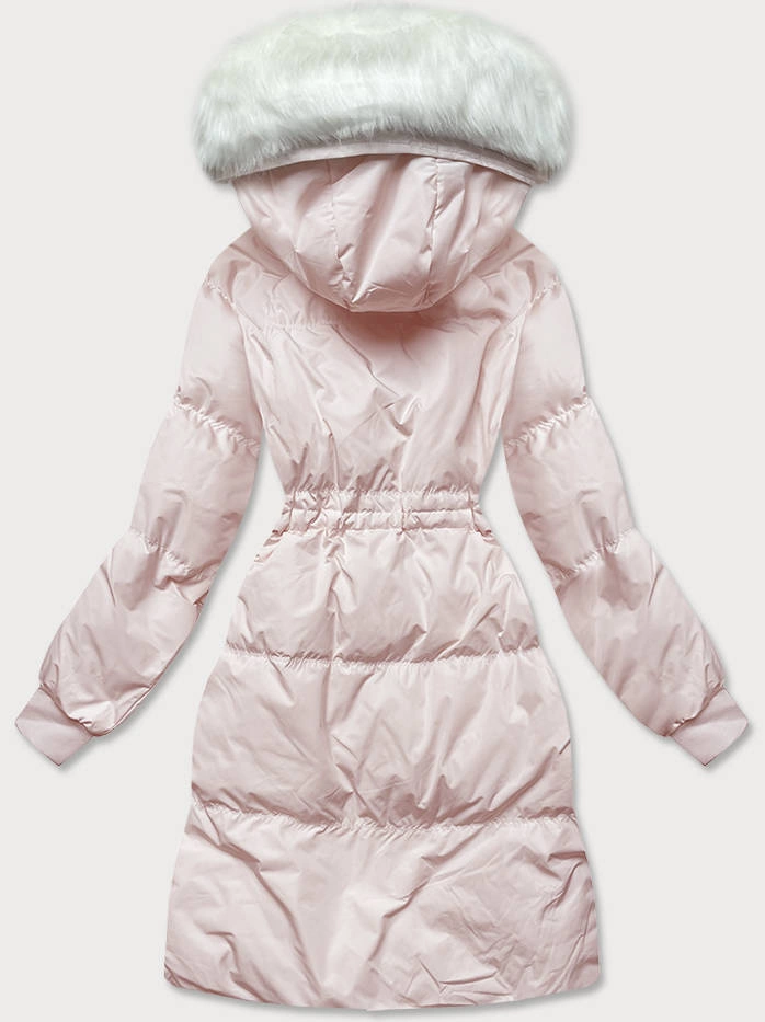 DAMSKI ZIMOWY PŁASZCZ Z KAPTUREM I PUCHEM NATURALNYM ŁOSOSIOWY (17117)