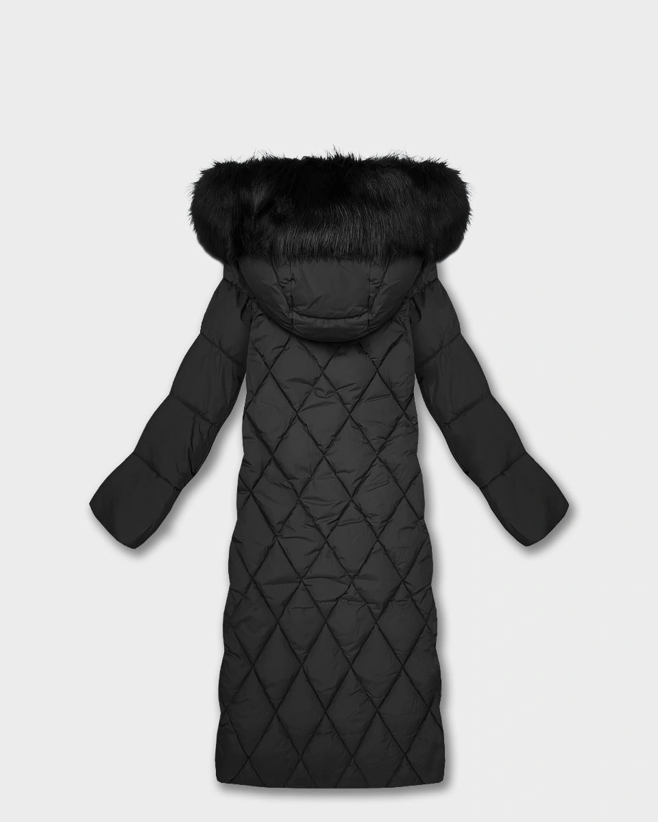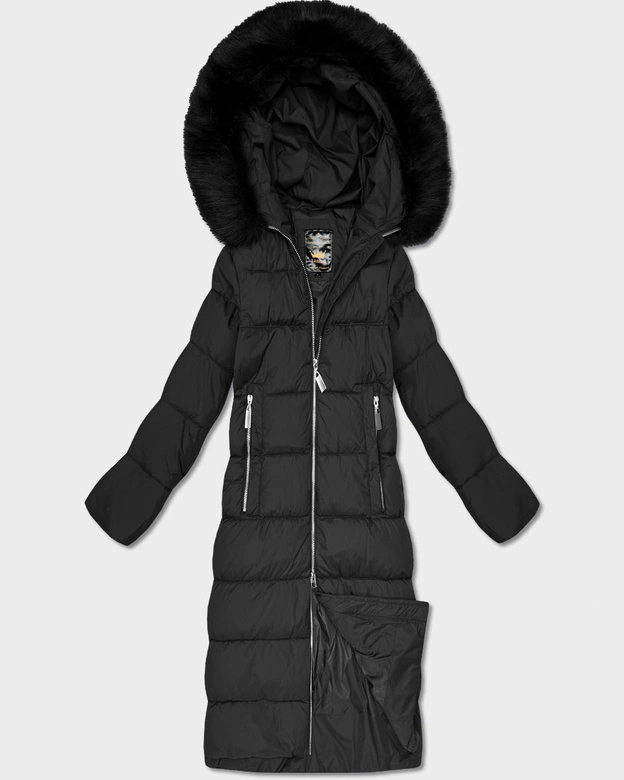 Długa damska kurtka zimowa z kapturem czarna (7688BIG)