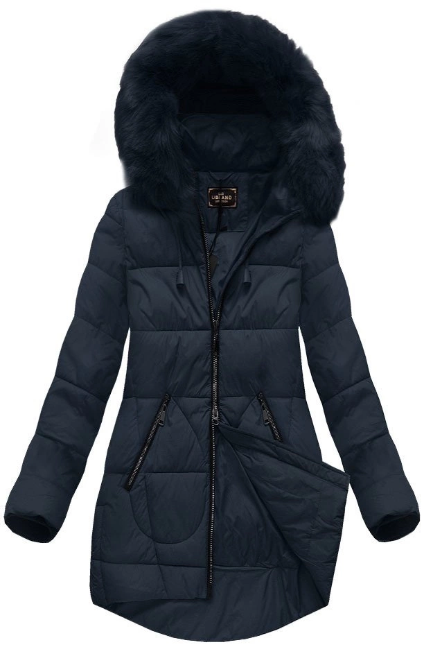 PIKOWANA KURTKA Z KAPTUREM GRANATOWA (7703)