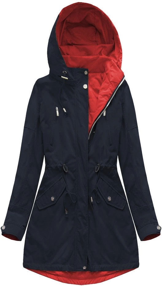 DWUSTRONNA PARKA Z KAPTUREM GRANATOWO-CZERWONA (W0232)