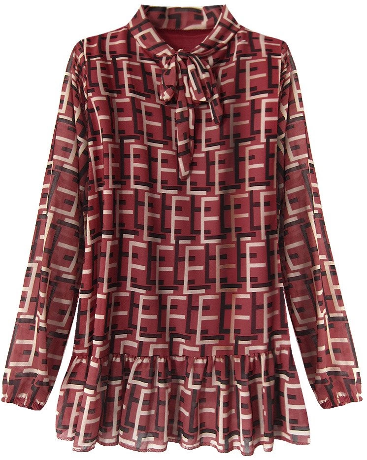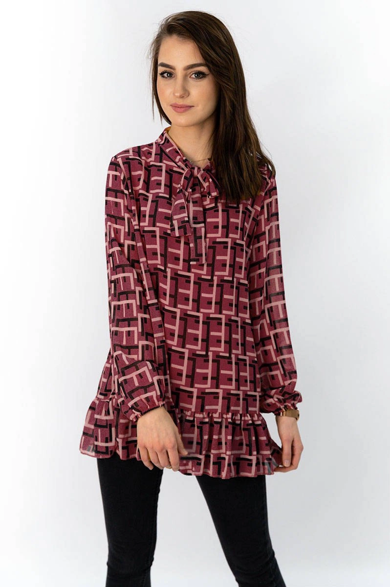 - Szyfonowa bluzka z wiązaną stójką.