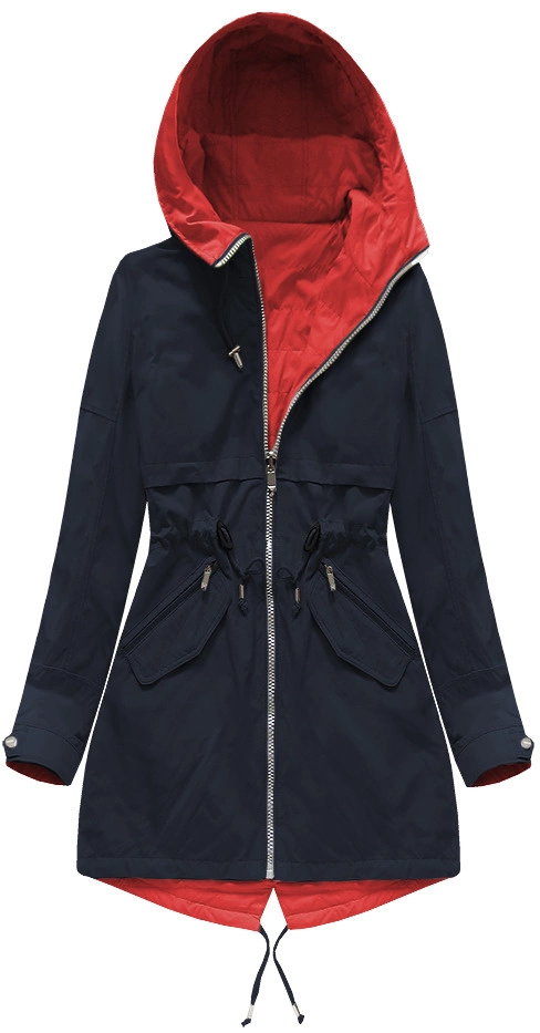 DWUSTRONNA PARKA Z KAPTUREM GRANATOWO-CZERWONA (W0236)