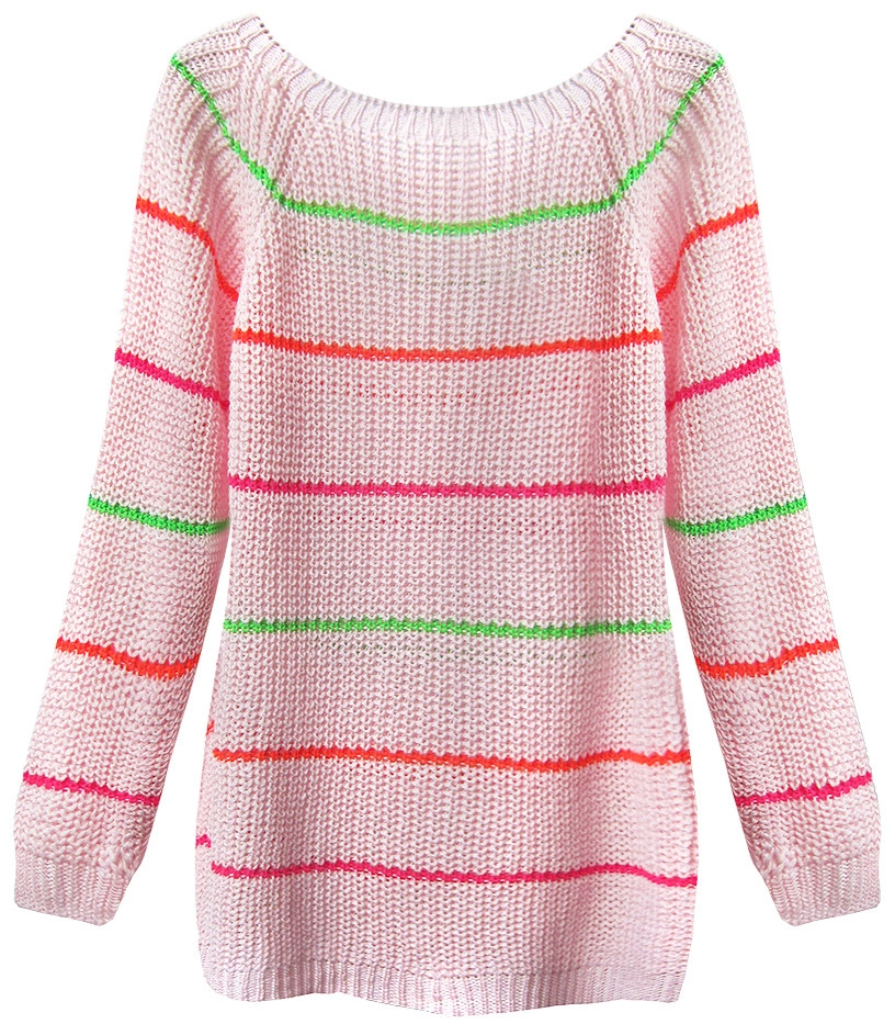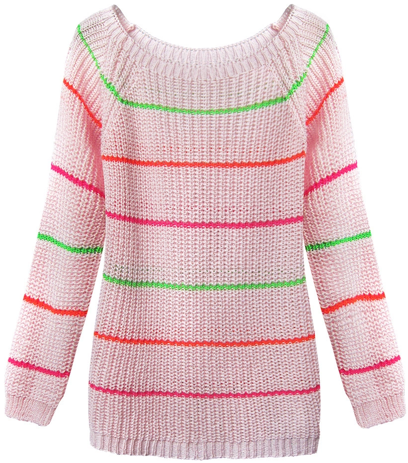 AŻUROWY SWETER W PASECZKI RÓŻOWY (275ART)
