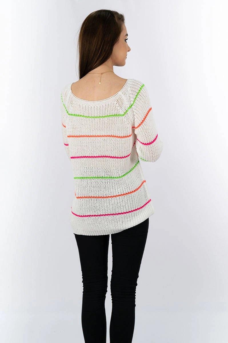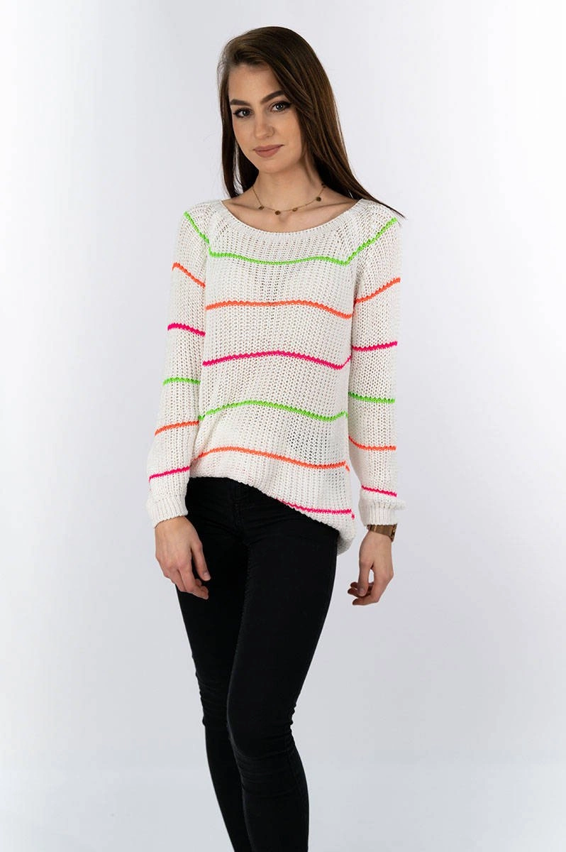 AŻUROWY SWETER W PASECZKI BIAŁY (275ART)