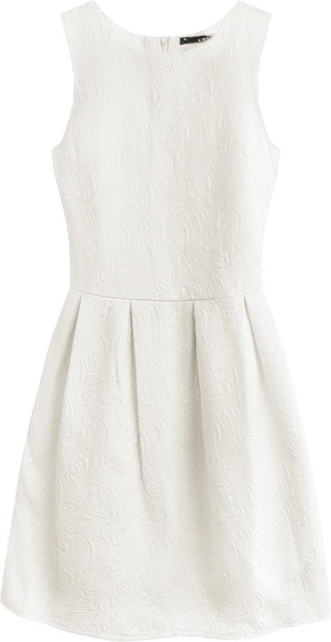 ROZKLOSZOWANA SUKIENKA W TŁOCZONE WZORY ECRU (0820)