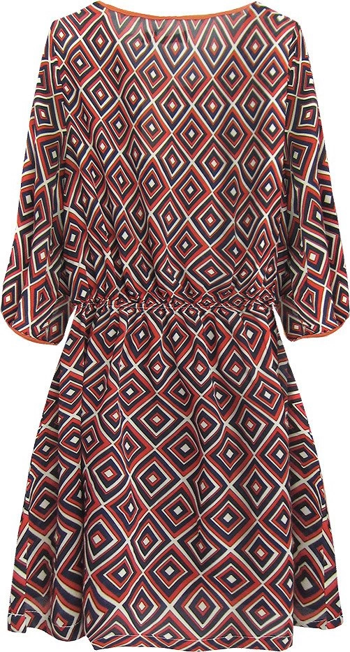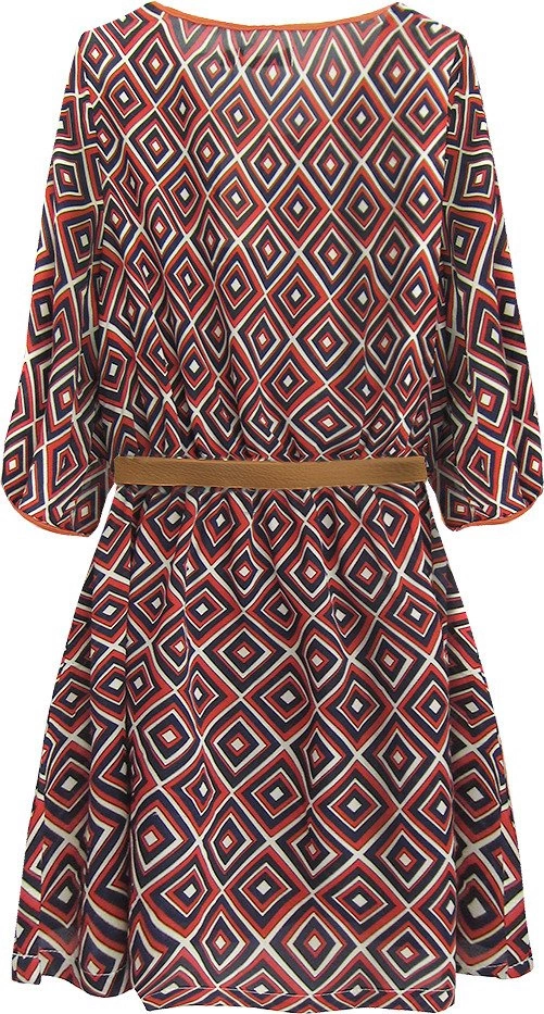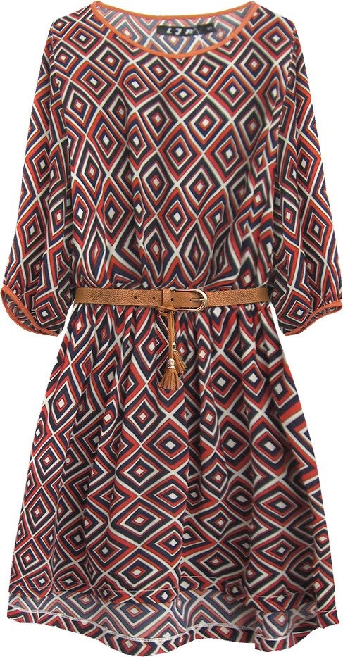 TUNIKA W GEOMETRYCZNE WZORY Z PASKIEM GRANATOWO-CEGLANA (6171/1)