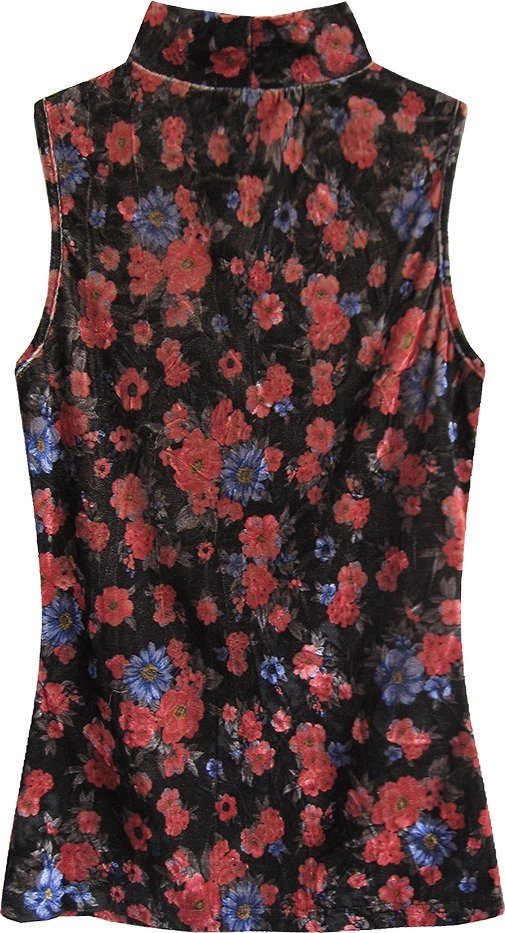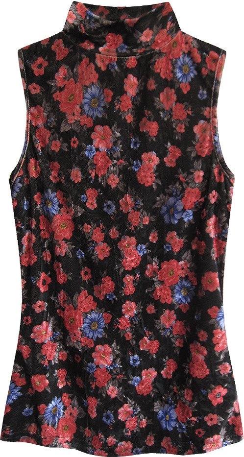WELUROWY GOLF W KWIATKI CZARNO-CZERWONY (3684/3)