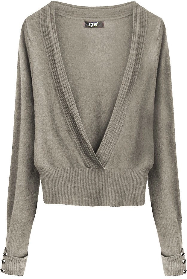 - Lekki kopertowy sweterek z głębokim dekoltem.