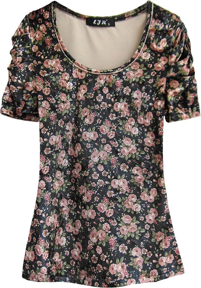 Opinie o WELUROWA BLUZKA W KWIATY CZARNO-ŁOSOSIOWA (3682/3)