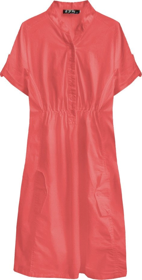 BAWEŁNIANA SUKIENKA KOSZULOWA KORALOWA (1052)