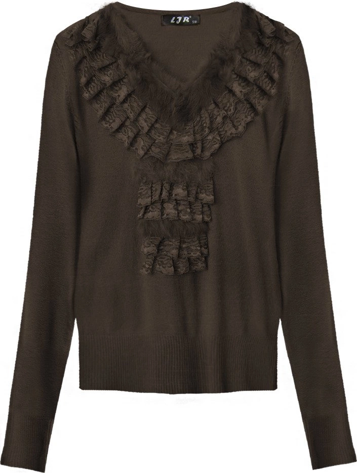 SWETEREK Z OZDOBNYM ŻABOTEM CIEMNOBRĄZOWY (X1535X)