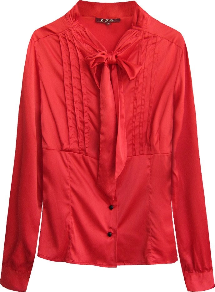 SATYNOWA KOSZULA Z WIĄZANĄ STÓJKĄ CZERWONA (X1066X)