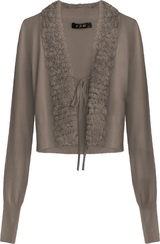 - Krótki wiązany sweterek z tiulowymi falbankami.