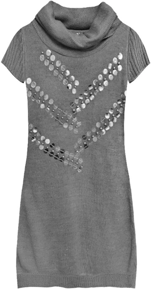 - Sweter zdobiony jest cekinami i koralikami.