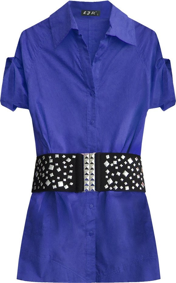 BAWEŁNIANA KOSZULA Z PASKIEM CHABROWA (X1035X)