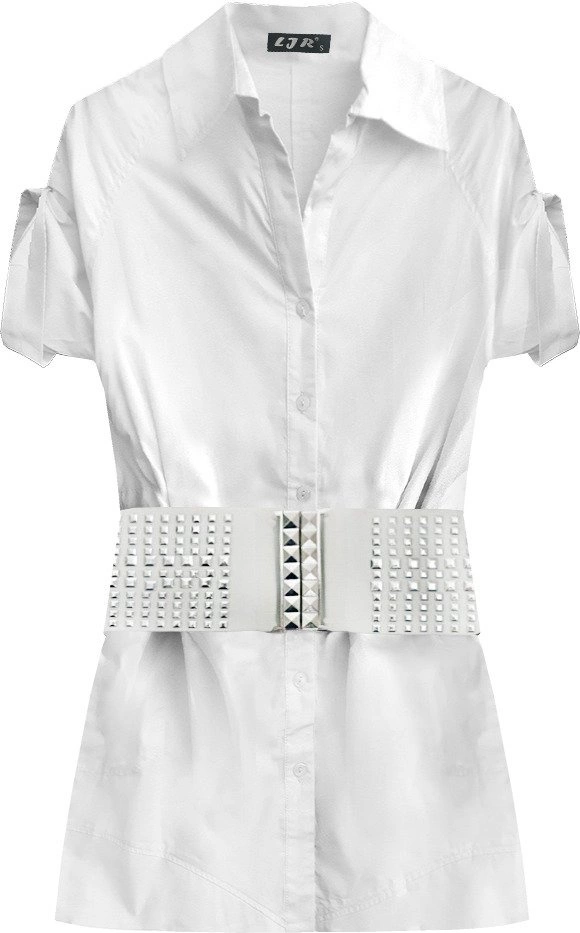 BAWEŁNIANA KOSZULA Z PASKIEM BIAŁA (X1035X)