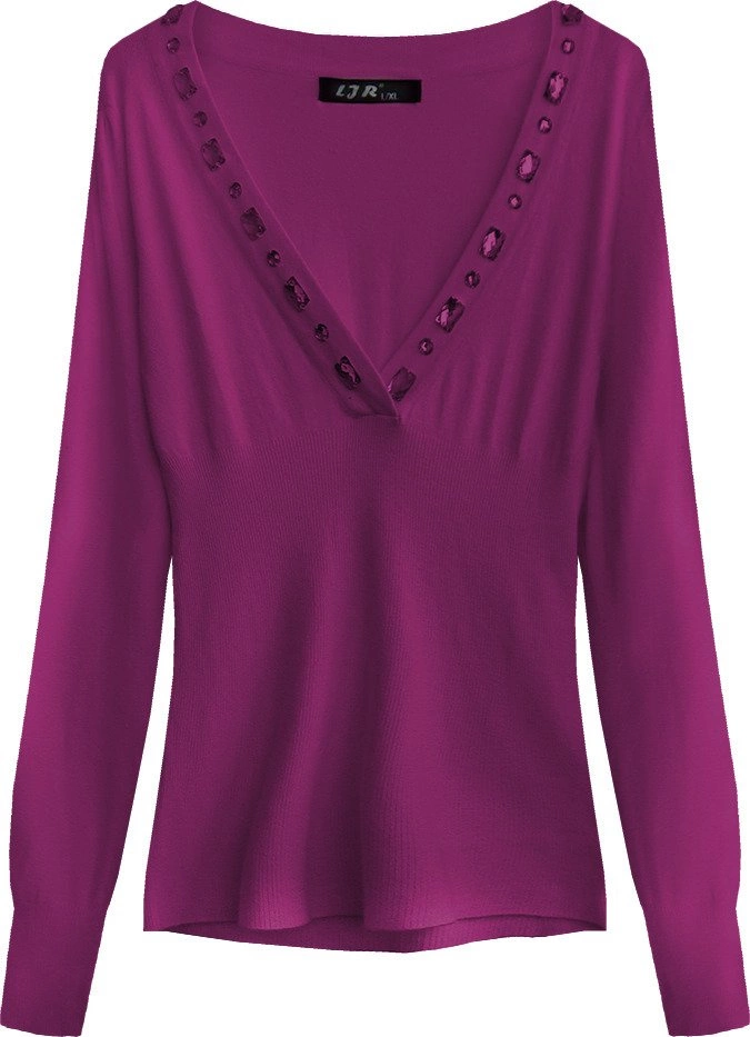 SWETER Z OZDOBNYMI KAMIENIAMI BURGUNDOWY (X1115X)