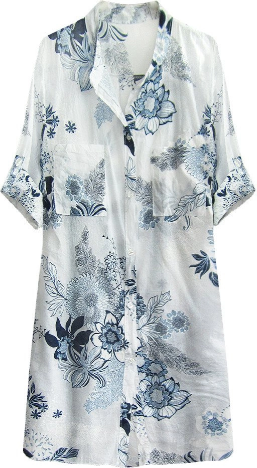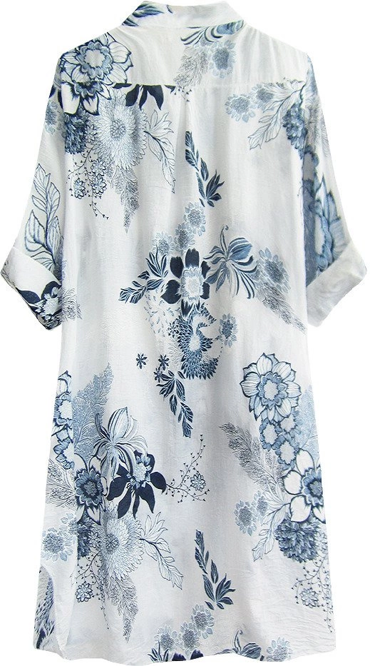 KOSZULOWA TUNIKA W KWIATY BIAŁO-NIEBIESKA (369ART)