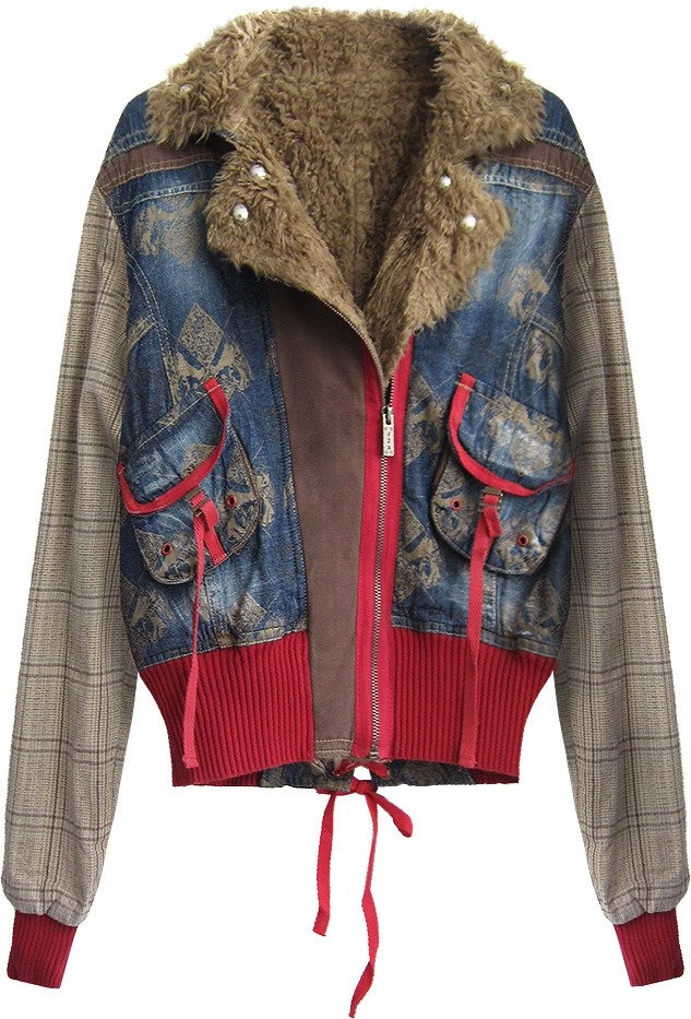 - Kurtka z łączonych materiałów.