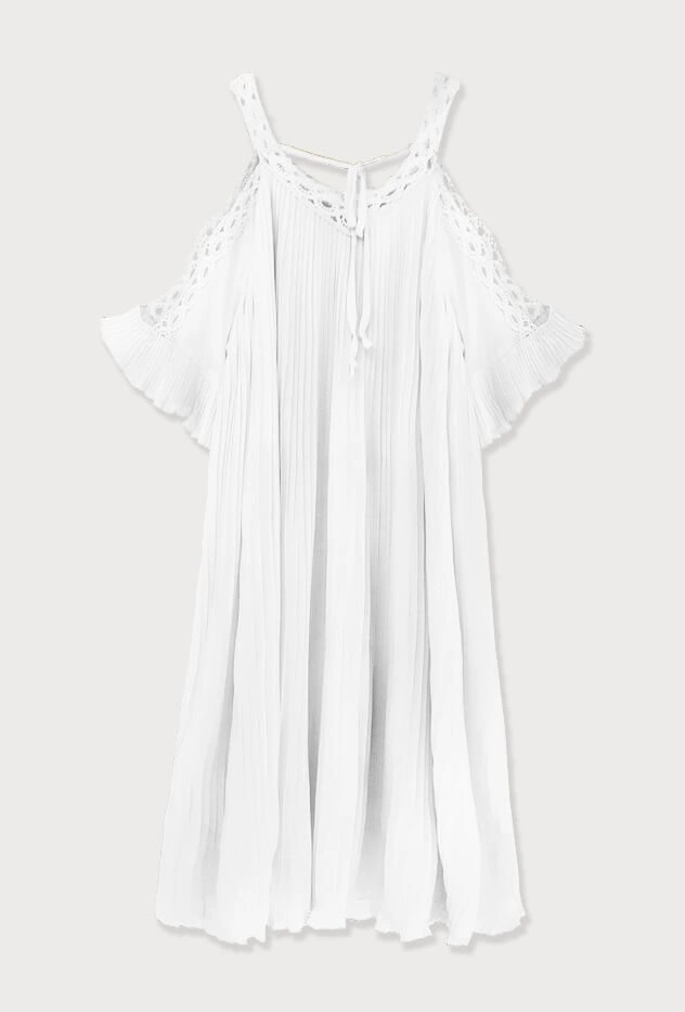 PLISOWANA SUKIENKA Z WYCIĘTYMI RAMIONAMI BIAŁA (342ART)