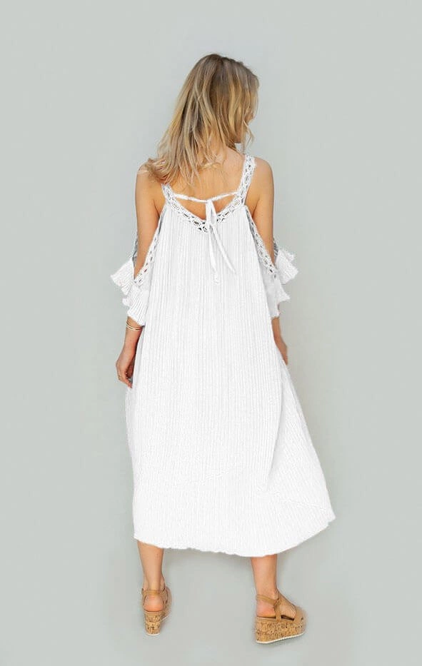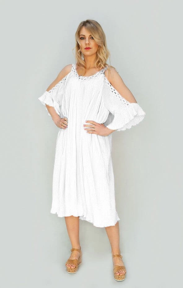 Opinie o PLISOWANA SUKIENKA Z WYCIĘTYMI RAMIONAMI BIAŁA (342ART)
