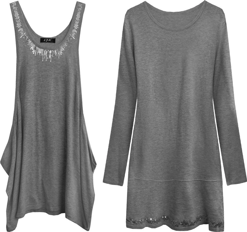 BAWEŁNIANY KOMPLET TUNIKA+BLUZKA CIEMNOSZARY (1196)