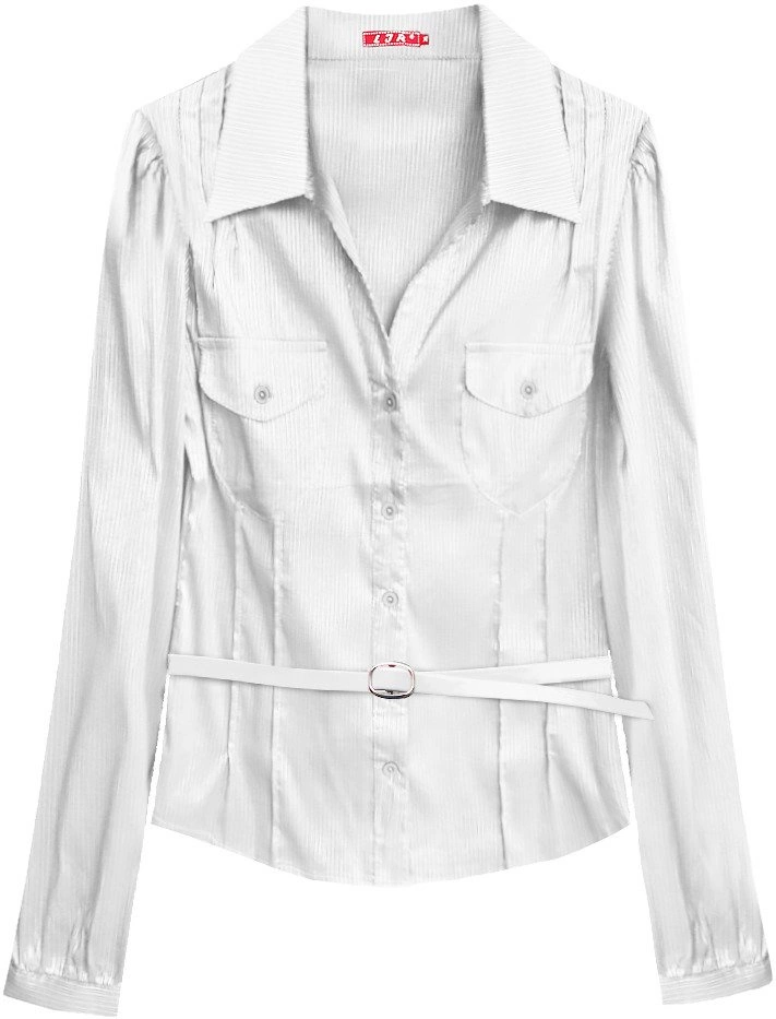 BŁYSZCZĄCA KOSZULA Z PASKIEM BIAŁA (X1007X)
