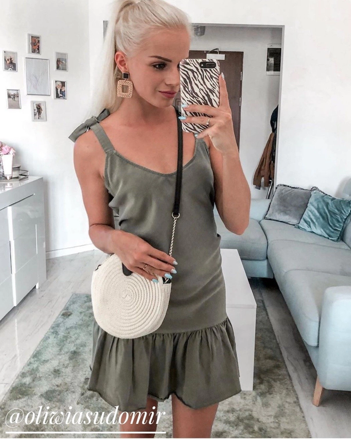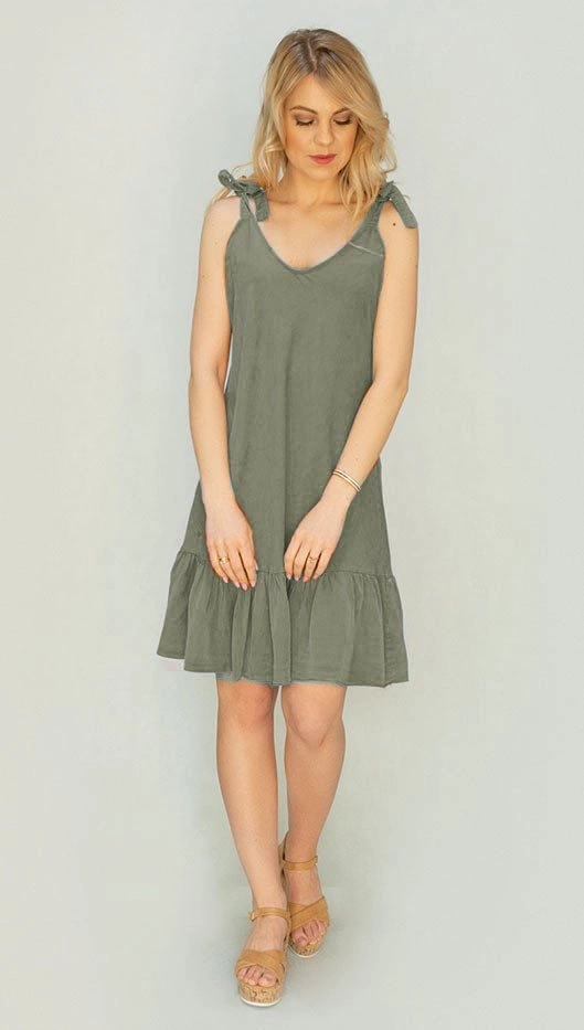 Opinie o SUKIENKA Z FALBANĄ SZAROZIELONA (393ART)