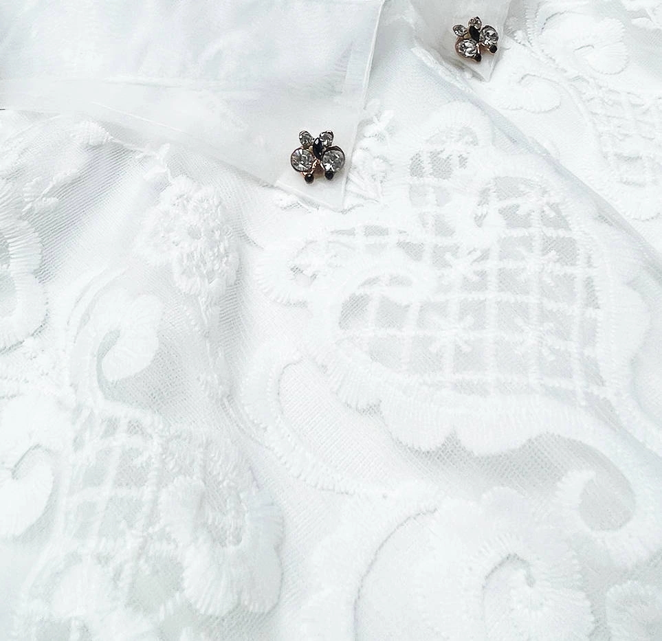 - Do bluzki są dołączone 2 broszki, którymi można ozdobić kołnierzyk