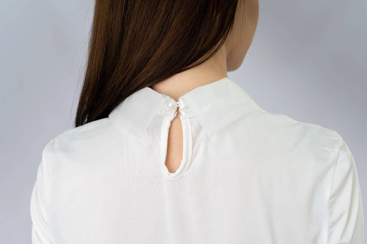 - Kołnierzyk z tyłu jest zapinany na guzik