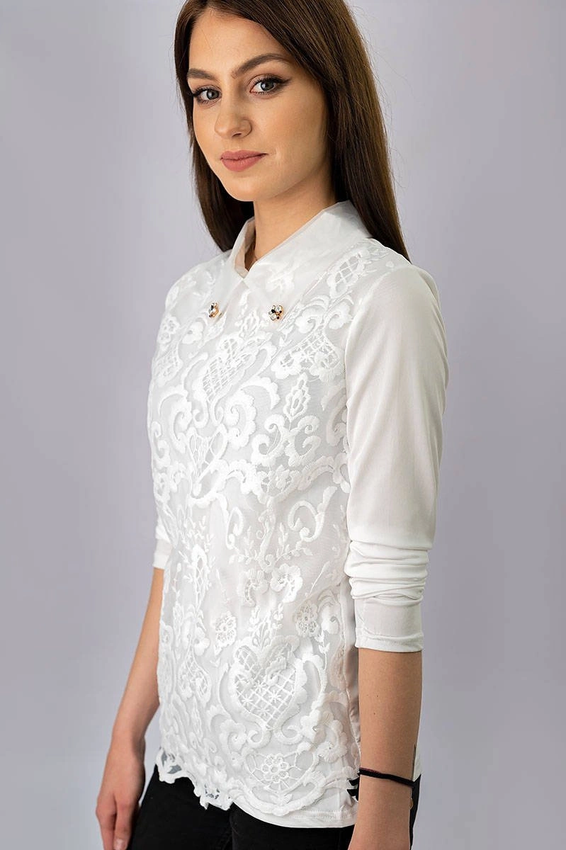 ELEGANCKA BLUZKA Z KOŁNIERZYKIEM ECRU (8522)
