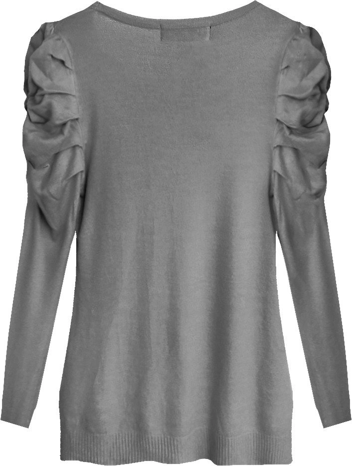 SWETER Z BUFIASTYMI RAMIONAMI CIEMNOSZARY (1528)