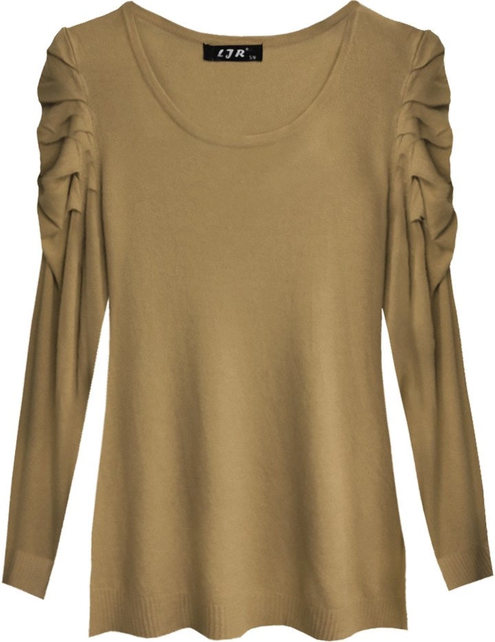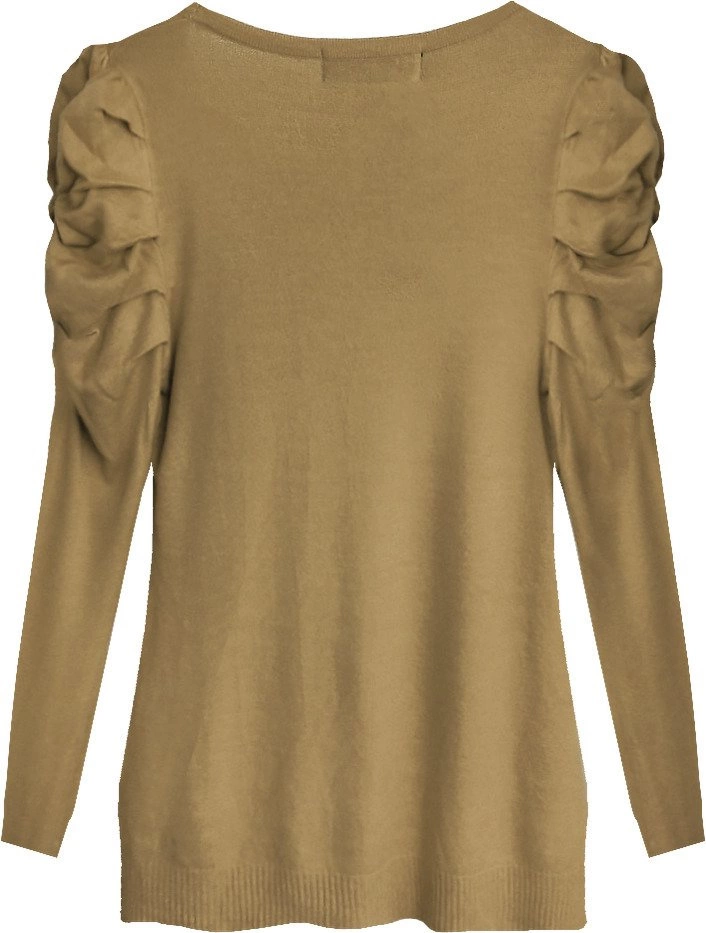 SWETER Z BUFIASTYMI RAMIONAMI KARMELOWY (1528)