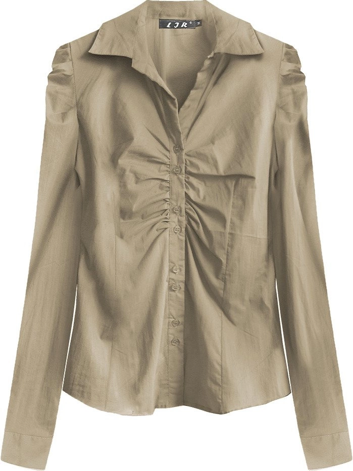 Opinie o BAWEŁNIANA KOSZULA Z DŁUGIM RĘKAWEM BEŻOWA (X1627X)