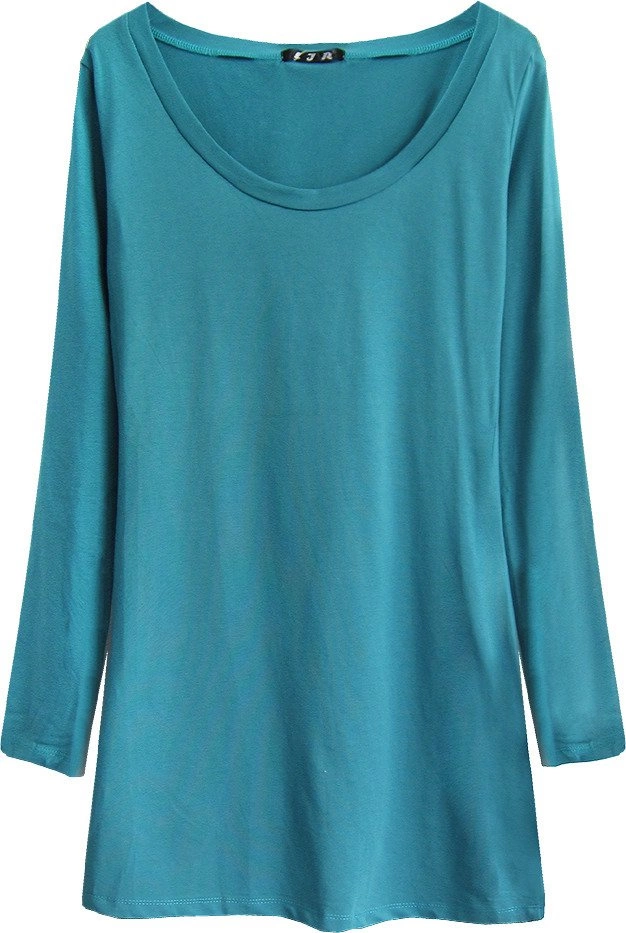 BAWEŁNIANA BLUZKA Z DŁUGIM RĘKAWEM TURKUSOWA (X1303X)