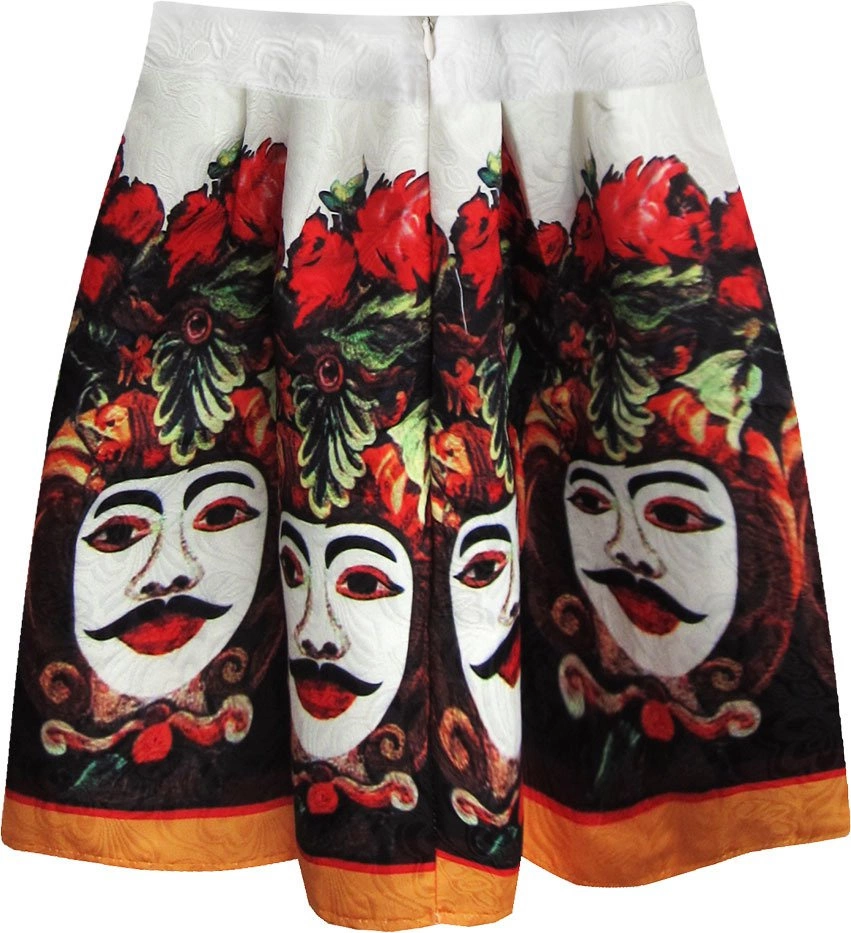 ROZKLOSZOWANA SPÓDNICA Z NADRUKAMI BIAŁA (383ART)