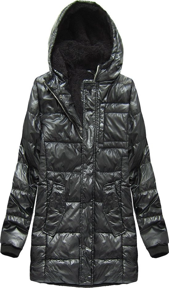 BŁYSZCZĄCA KURTKA ZIMOWA NA MISIU CZARNA (51034)